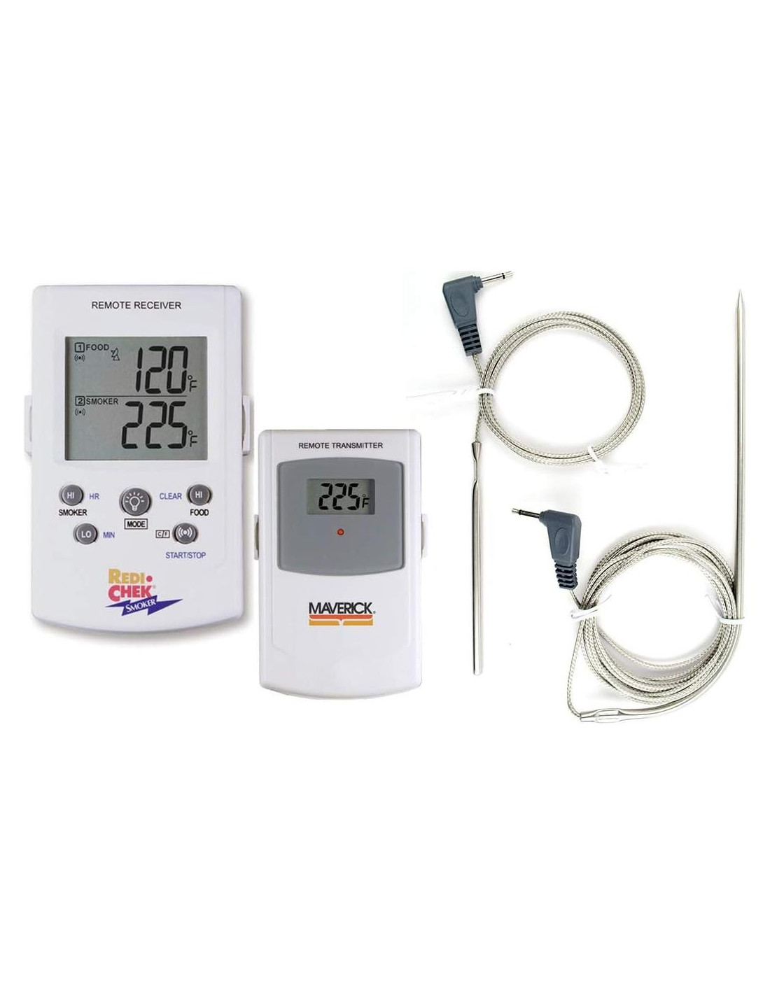 Descripción del Producto El termómetro inalámbrico para ahumador indica al cocinero la temperatura interna del ahumador y la temperatura interna de los alimentos que se están cocinando en el ahumador desde hasta 100 pies (30,48 m) de distancia. Amazon.com Ahumar carne y pescado adecuadamente puede llevar días. Así que, en lugar de salir al ahumador para verificar la temperatura una y otra vez, simplemente instala un termómetro inalámbrico RediChek y descansa tranquilo. Este práctico termómetro monitorea la temperatura del aire del ahumador y la temperatura de los alimentos desde hasta 100 pies (30,48 m) de distancia. Y, si la temperatura baja demasiado o sube demasiado, la alarma RediChek se activa, por lo que no hay lotes arruinados, solo la certeza de que cada lote de salmón ahumado es perfecto. El RediChek también se puede usar con un horno o parrilla para mayor tranquilidad mientras horneas, haces barbacoa y gratinas, y para hacer menos viajes a la cocina. Lo mejor de todo es que el RediChek es inalámbrico, por lo que la instalación es muy fácil. Tu compra incluye cuatro baterías AAA para uso inmediato.