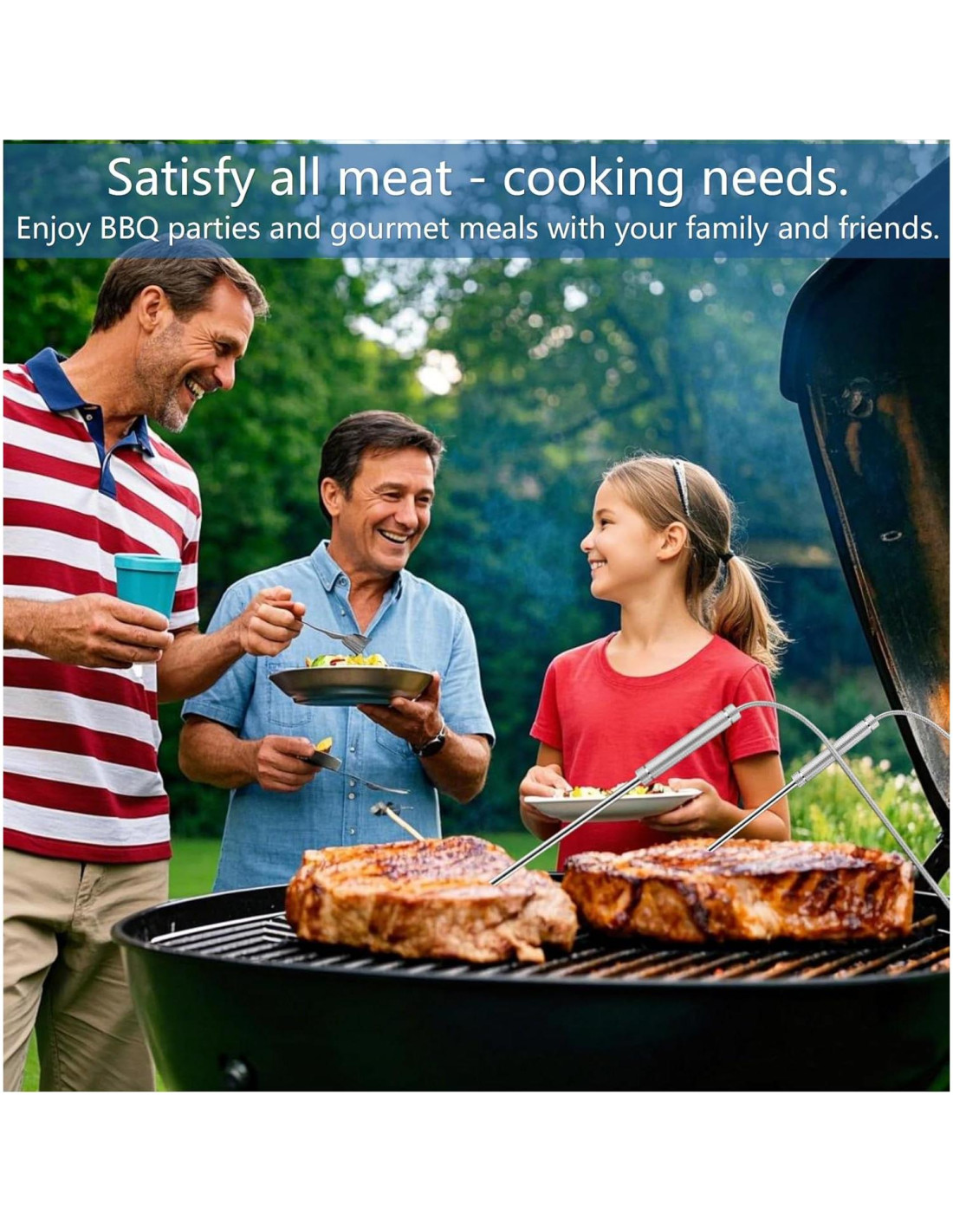 - CUMPLE CON TODOS LOS REQUISITOS DE COCINADO DE CARNE: Los cables de malla de acero inoxidable de 40 pulgadas (101.6 cm), clasificados para 716F (380C), conectan el termómetro a la base ubicada fuera del horno, parrilla o ahumador. Ahora, puedes disfrutar de fiestas de barbacoa y comidas gourmet con tu familia y amigos.