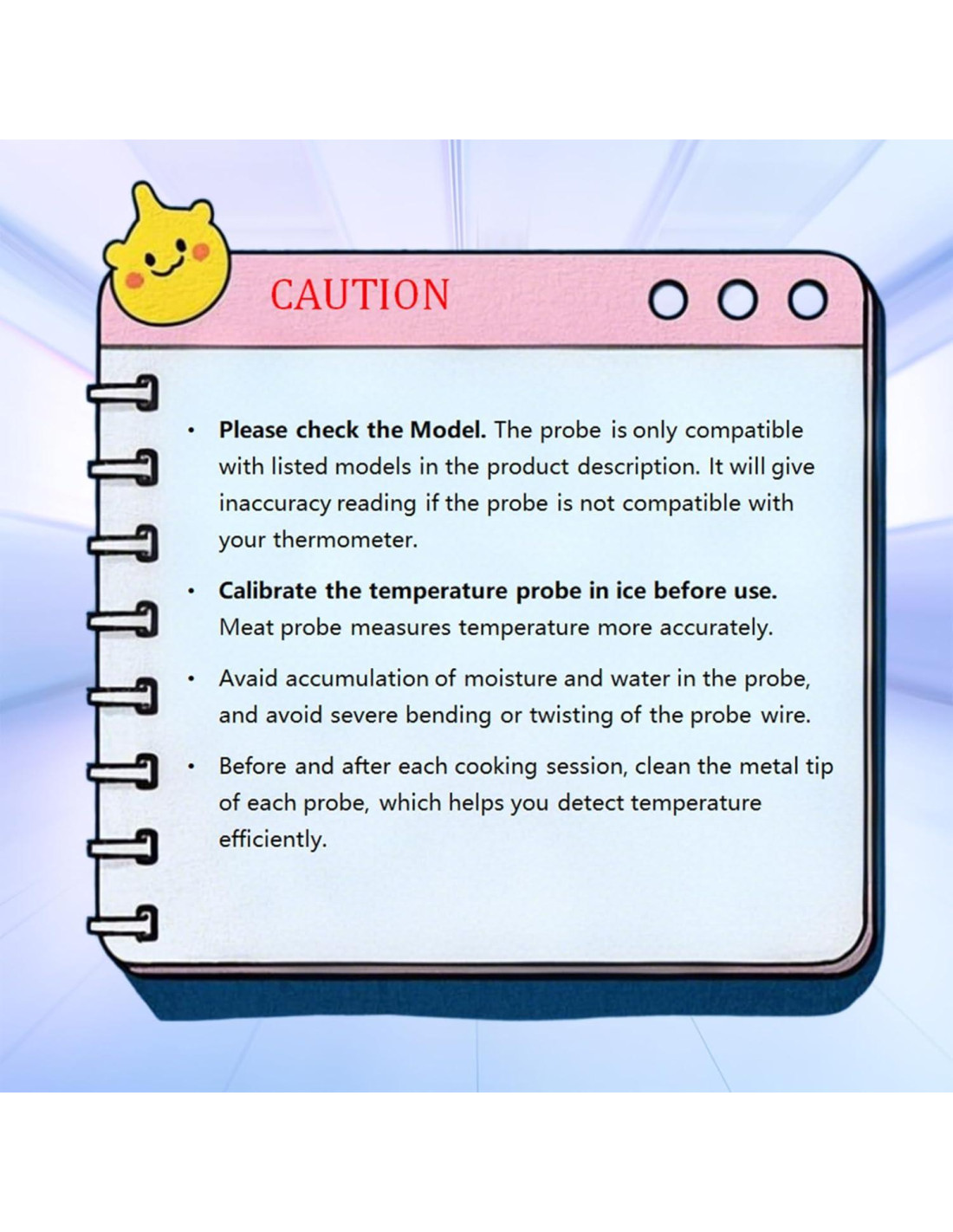 - PAQUETE COMPLETO: El paquete incluye dos sondas de temperatura y dos soportes de clip. Inserta las sondas de reemplazo para Thermopro en la parrilla, y comienzan a leer inmediatamente la temperatura de la carne. Los clips de acero evitan que las sondas toquen la rejilla.