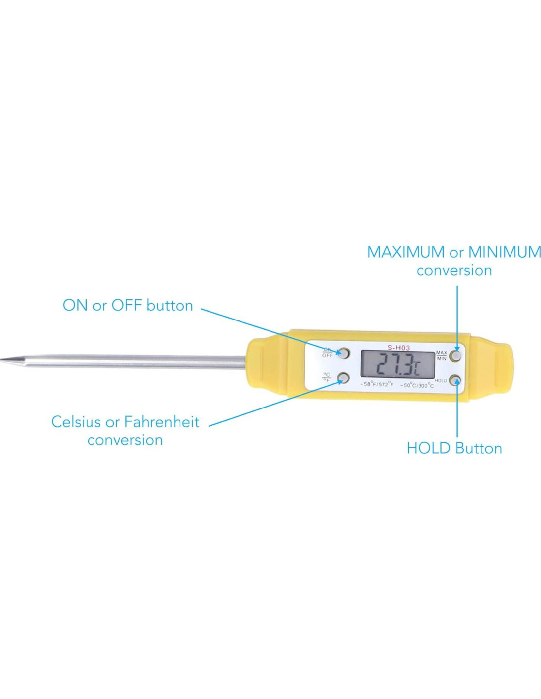 - El termómetro digital portátil tipo bolígrafo puede ayudarte a controlar con precisión la temperatura, por lo que no tendrás que preocuparte de que la temperatura del aceite sea demasiado alta nuevamente.
