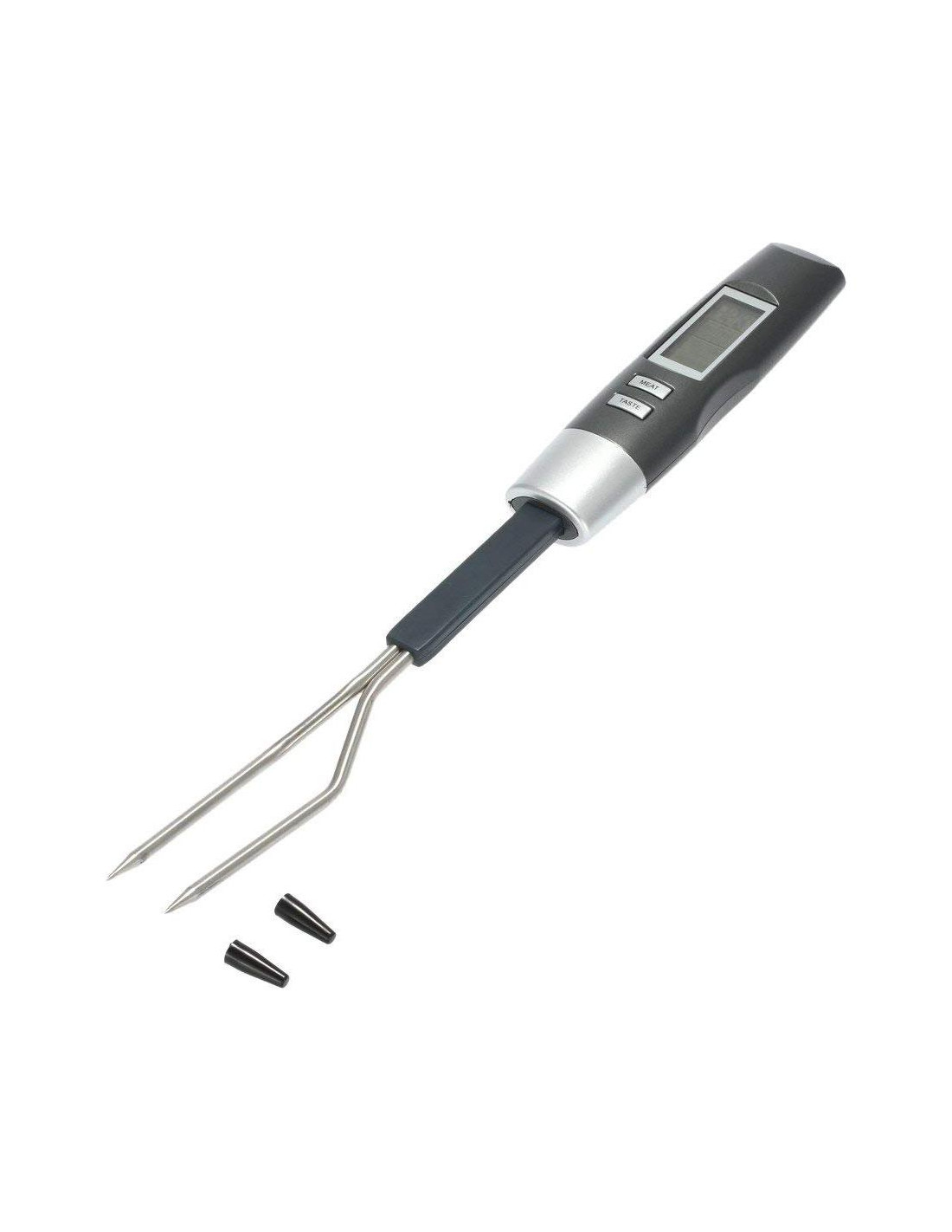 A veces es difícil saber cuándo está listo tu comida y cuándo es un término medio perfecto. ¡Bueno, no te preocupes más! Este tenedor digital para barbacoa viene con un termómetro para informarte cuándo está listo para comer... y qué tan bien cocido lo deseas. Características: Pantalla digital LCD con luz de fondo LED para una lectura clara. Mango cómodo con un tenedor de acero inoxidable de 5 pulgadas (12.7 cm) con sonda de temperatura. Elige tipos de carne (como res, ternera, cordero, cerdo, pollo y pavo) y el gusto de cocción que desees. Con un anillo en el mango, puedes colgarlo en la pared de la cocina. Intercambiable entre F/C. Función de apagado automático. Aviso: Nunca uses el termómetro en un horno cerrado. Limpia la sonda a fondo después de cada uso. No es resistente al agua y no lo dejes funcionar a alta temperatura durante mucho tiempo. Para ahorrar energía, por favor retira la batería después de usar. Especificaciones: Color: Plata + Gris Material: ABS + Acero Inoxidable Pantalla: Pantalla LCD con luz de fondo LED Fuente de Alimentación: 2 * Batería AAA (NO Incluida) Tamaño del Producto: 35.5 * 4 * 2.2 cm / 14 * 1.6 * 0.86 in Peso del Producto: 86 g / 3.03 oz Tamaño del Paquete: 124 g / 4.37 oz Peso del Paquete: 35.5 * 4.5 * 3.5 cm / 14 * 1.77 * 1.4 in Lista del Paquete: 1 * Termómetro 1 * Manual del Usuario (Español)