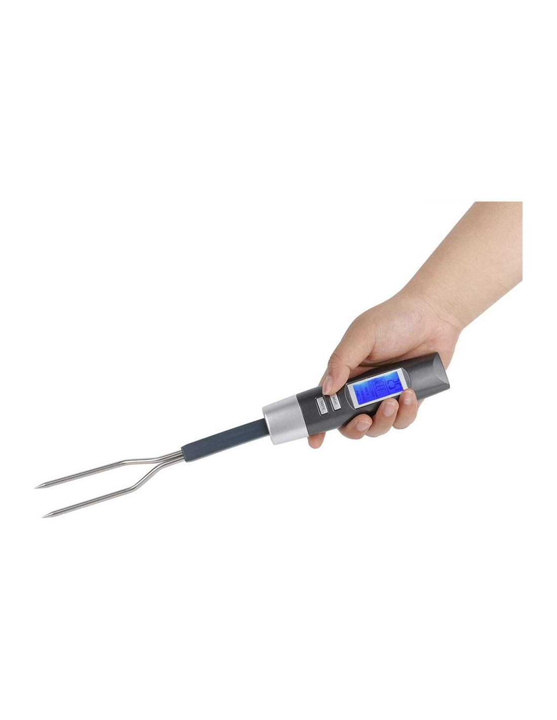 Especificación: Material: Acero inoxidable + plástico Tamaño: aproximadamente 35*4*2.5cm (13.78*1.57*0.98in) Batería: 2 x pilas AAA (no incluidas) Lista de Paquete: 1* Termómetro de Parrilla Aviso: Por favor, permita un error de 1-2cm debido a la medición manual y asegúrese de que no le importe antes de ordenar.