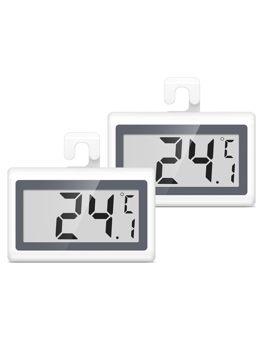 - Pantalla Grande y Clara & Diseño que Ahorra Espacio: La gran pantalla LCD del termómetro con dígitos en negrita asegura una fácil lectura desde el otro lado de la habitación. Compacto y portátil (6.5 x 4.5 x 1 cm), se adapta perfectamente en refrigeradores, congeladores, mini refrigeradores o enfriadores sin ocupar espacio adicional.