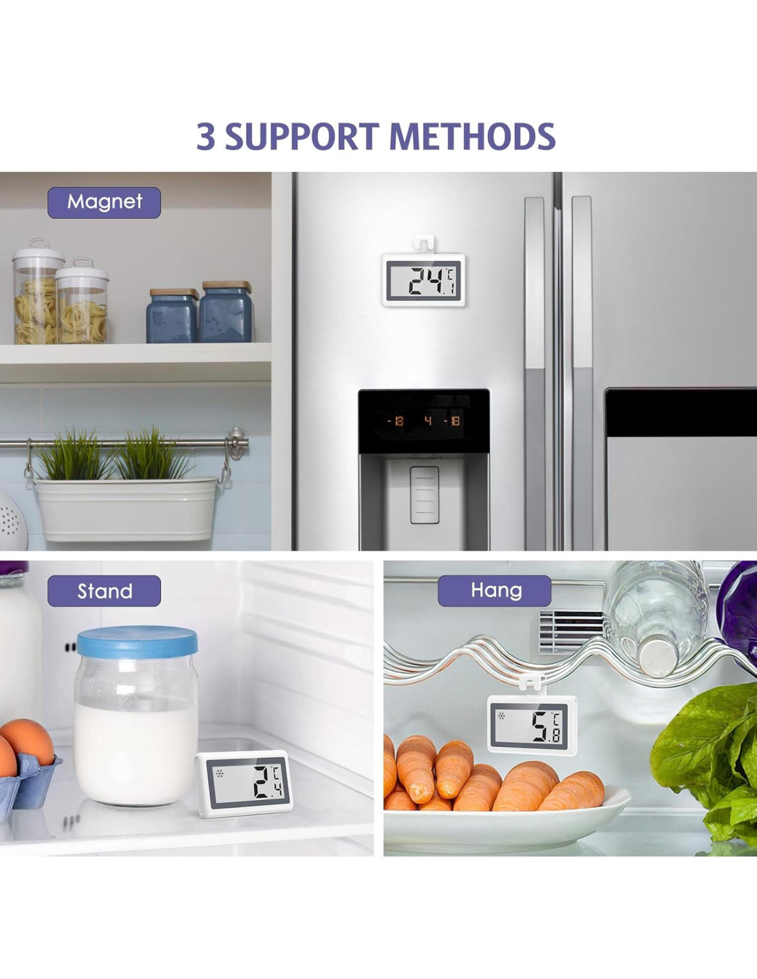 - 3 Opciones de Montaje Flexibles: Cuélgalo con el gancho, adhiérelo a cualquier superficie metálica con el imán incorporado, o déjalo de pie en una estantería. El diseño compacto asegura que se ajuste perfectamente en refrigeradores, congeladores, mini refrigeradores o enfriadores de bebidas.