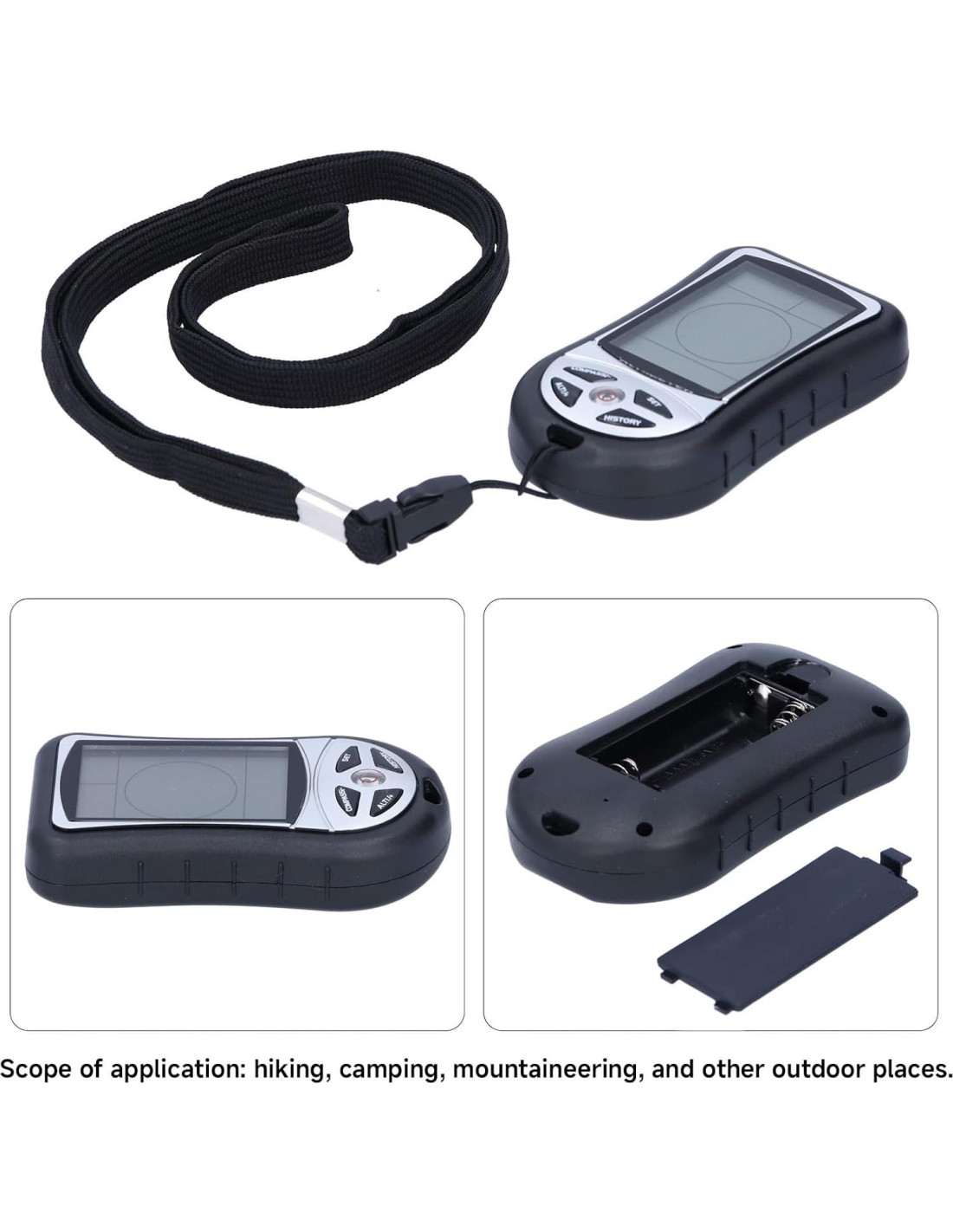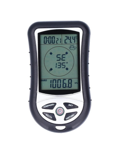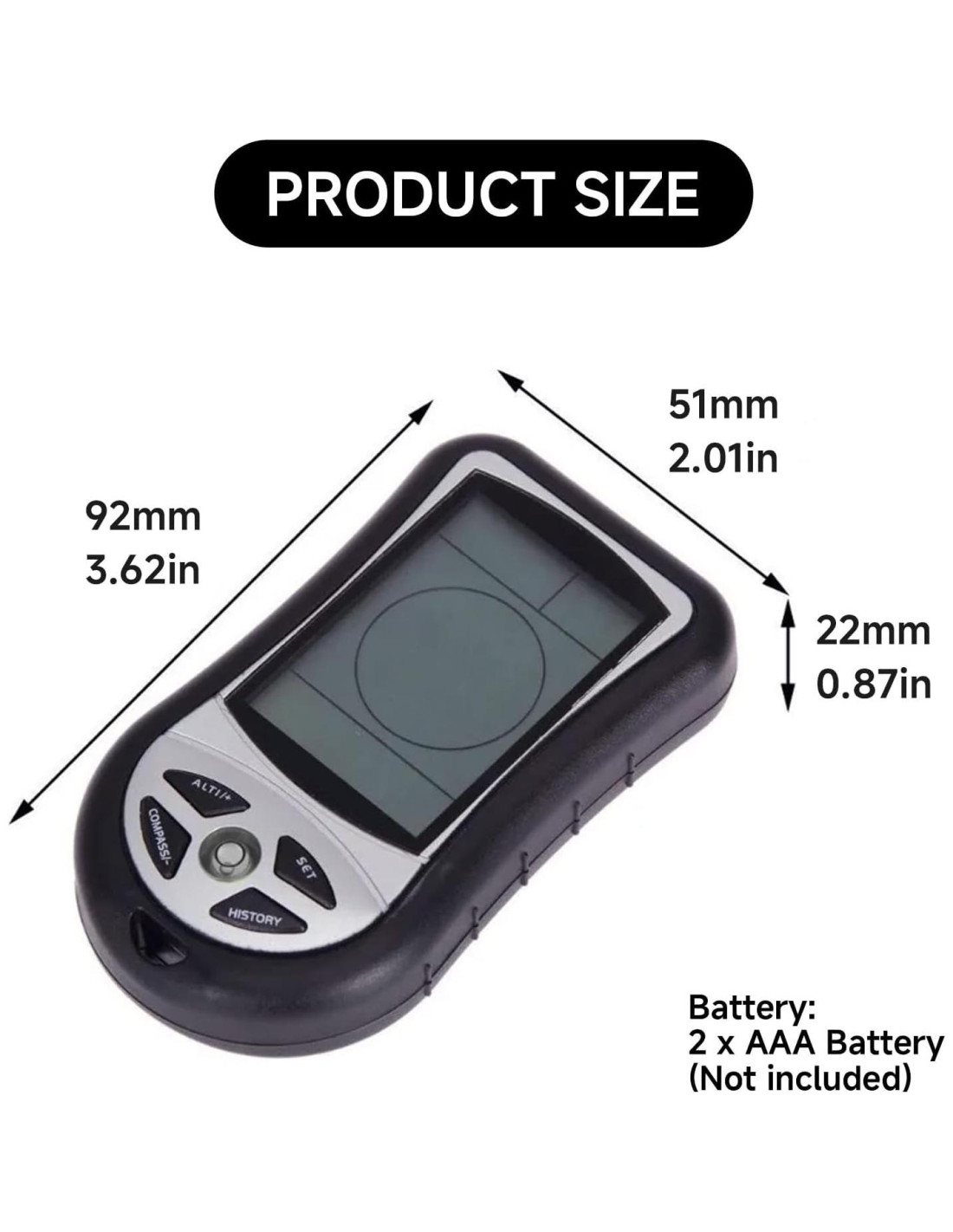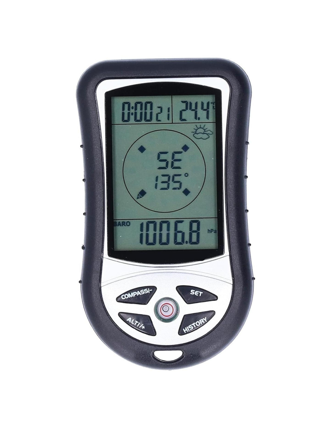 - Brújula Electrónica: El medidor de altitud electrónico multifuncional también funciona como una brújula digital confiable. El altímetro brújula electrónica para deportes al aire libre cuenta con una pantalla de 8 direcciones que se ajusta según los campos magnéticos externos, asegurando que te mantengas orientado durante tus excursiones al aire libre.