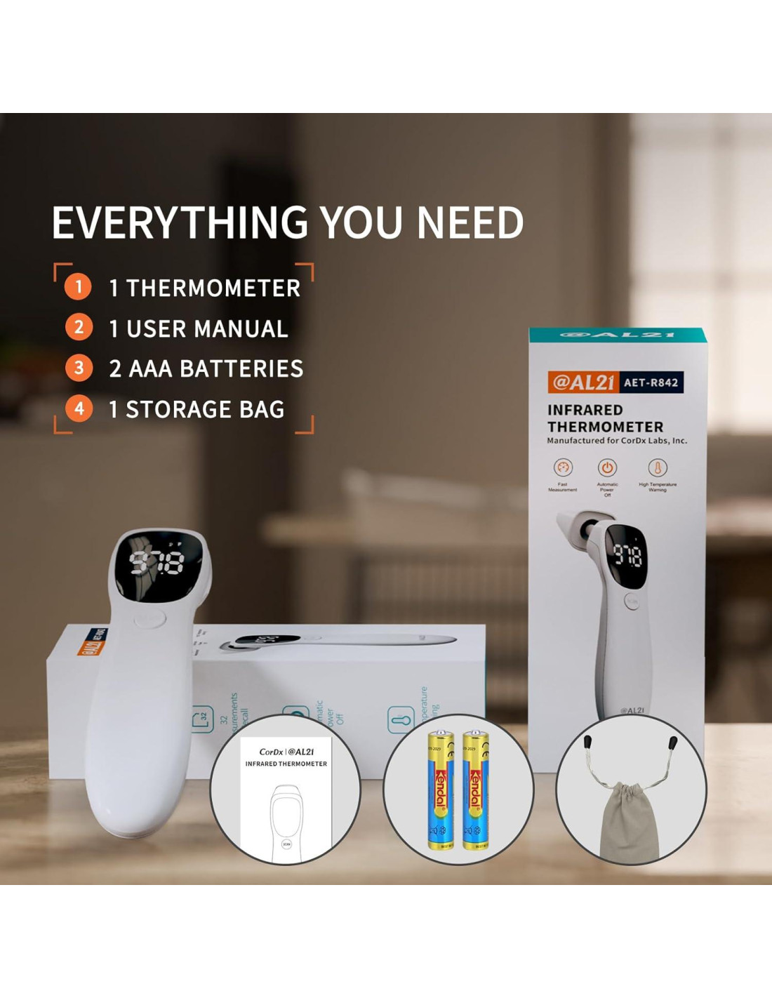 AL21 Termómetro de Frente 2-en-1, Precisión y Comodidad en Cada Lectura AL21 es una sub-marca con sede en EE. UU. de CorDx, comprometida a ofrecer esenciales de salud confiables. Combinamos un diseño inteligente con un rendimiento confiable para apoyar el bienestar diario y la tranquilidad. Con AL21, siempre estás listo para lo que más importa.