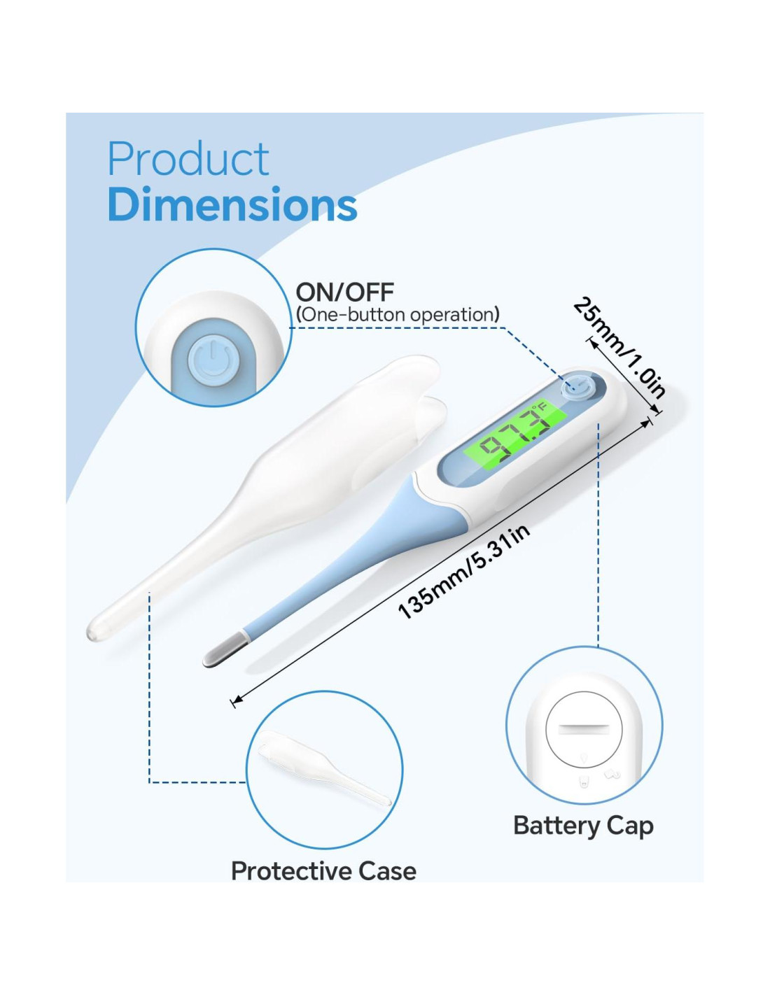 - Sistema de Lectura Rápida de 8s. Termómetro Digital Clínico Médico Profesional proporciona lecturas de alta precisión y fáciles de rápidas en 8 segundos, para que pueda obtener resultados rápidos cuando más los necesita.