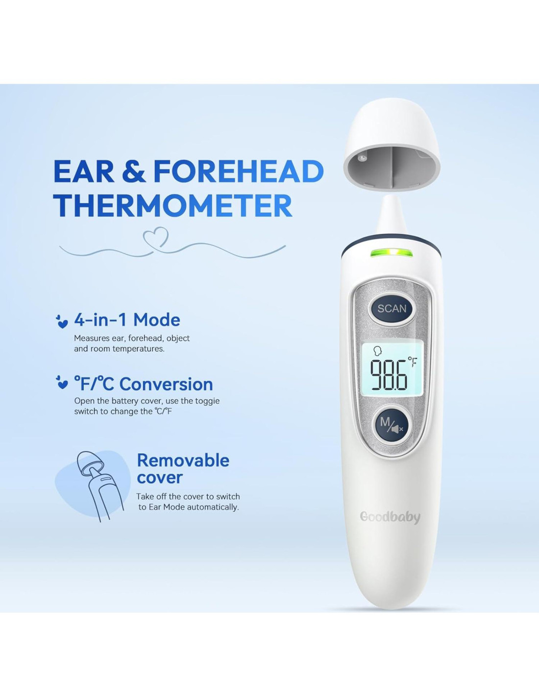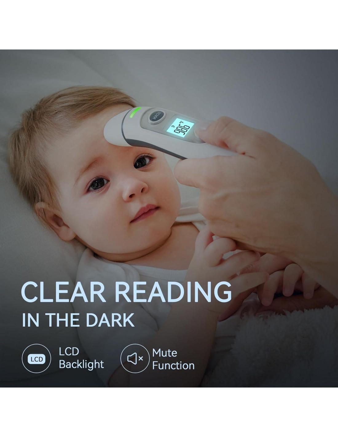 - [LECTURAS MUY PRECISAS] Nuestro termómetro para bebés ha sido clínicamente probado y se ha encontrado que es un dispositivo rápido y absolutamente confiable de usar. Es ideal para lecturas de frente y oído, y tiene un margen de error muy pequeño (0.1F para modo corporal y 1.0F para modo ambiental. En realidad, es más preciso que los termómetros de mercurio estándar.