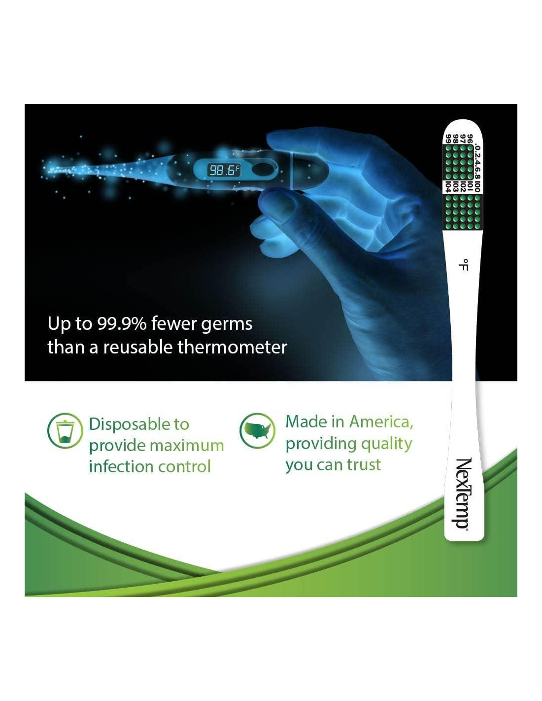 - ¡DESHÁGASE DE LOS GÉRMENES: Los termómetros NexTemp son 100% higiénicos y están envueltos individualmente, y desechar el termómetro después de su uso elimina prácticamente el riesgo de propagar enfermedades!