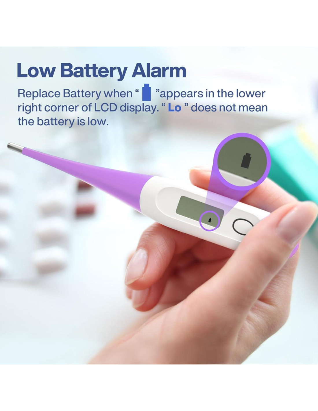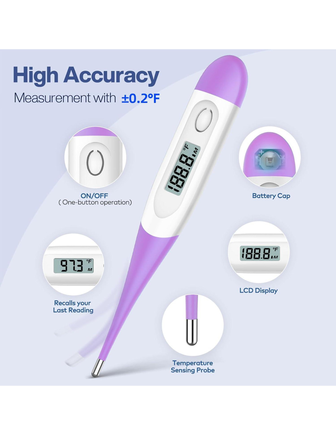 - Lectura Precisa y Rápida: Este termómetro digital utiliza la sonda de sensor más avanzada y solo toma aproximadamente 10 segundos para obtener una lectura. Su función de lectura de temperatura ha sido clínicamente probada, lo que le permite detectar fiebre con precisión. Así, puede ayudarle a decidir si necesita descansar o buscar atención médica.