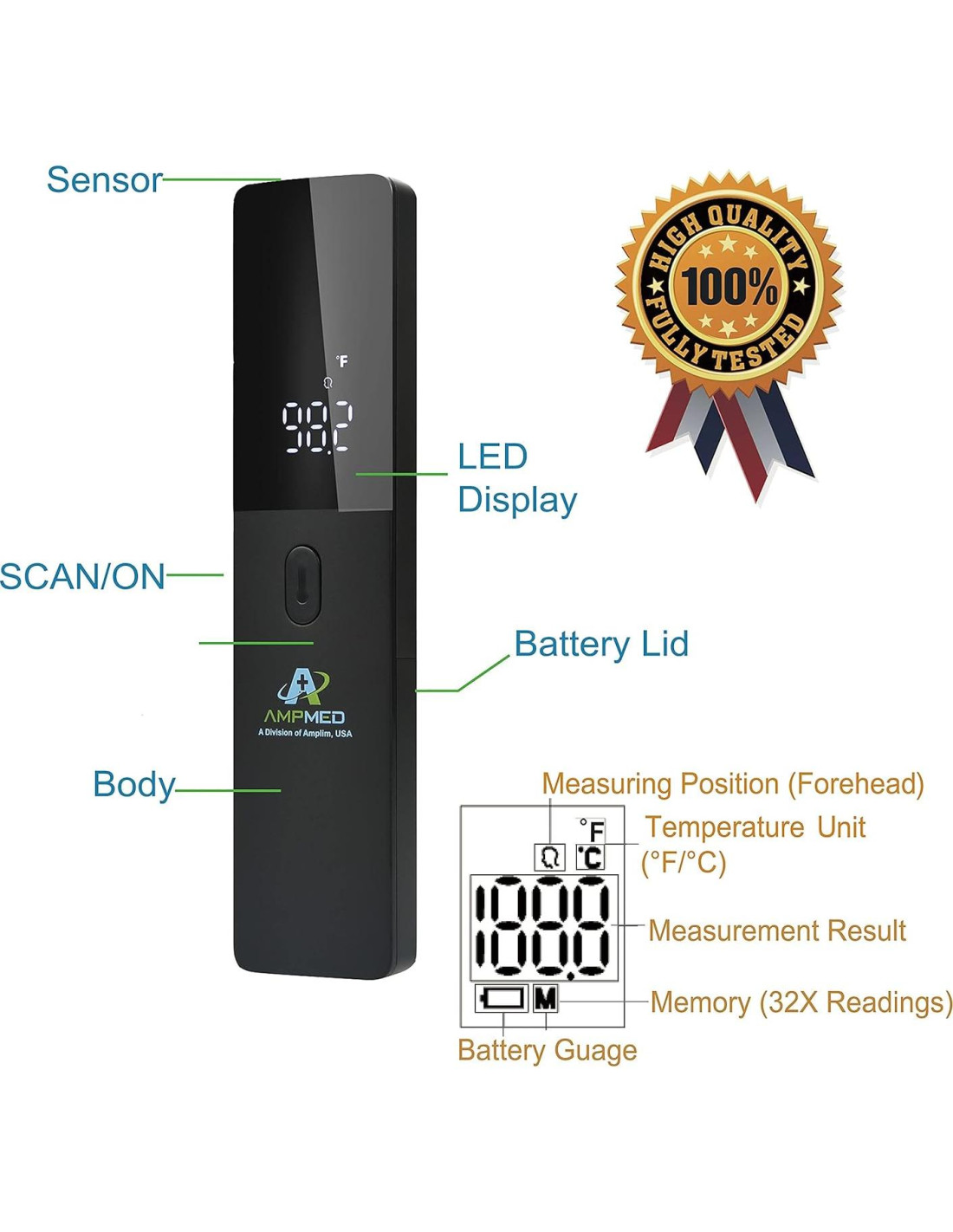 - RÁPIDO + PRECISO: Sensor infrarrojo sin contacto con pantalla LED grande; Alarma audible suena a temperaturas corporales / de cabeza con fiebre; Usado por médicos, enfermeras y profesionales de la salud