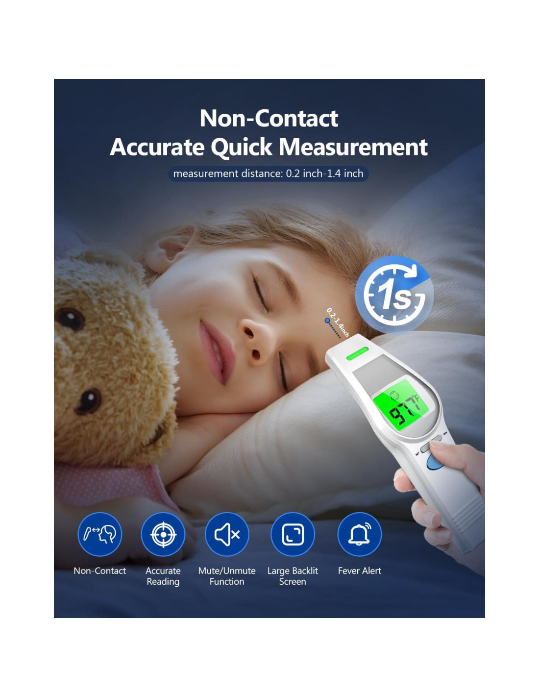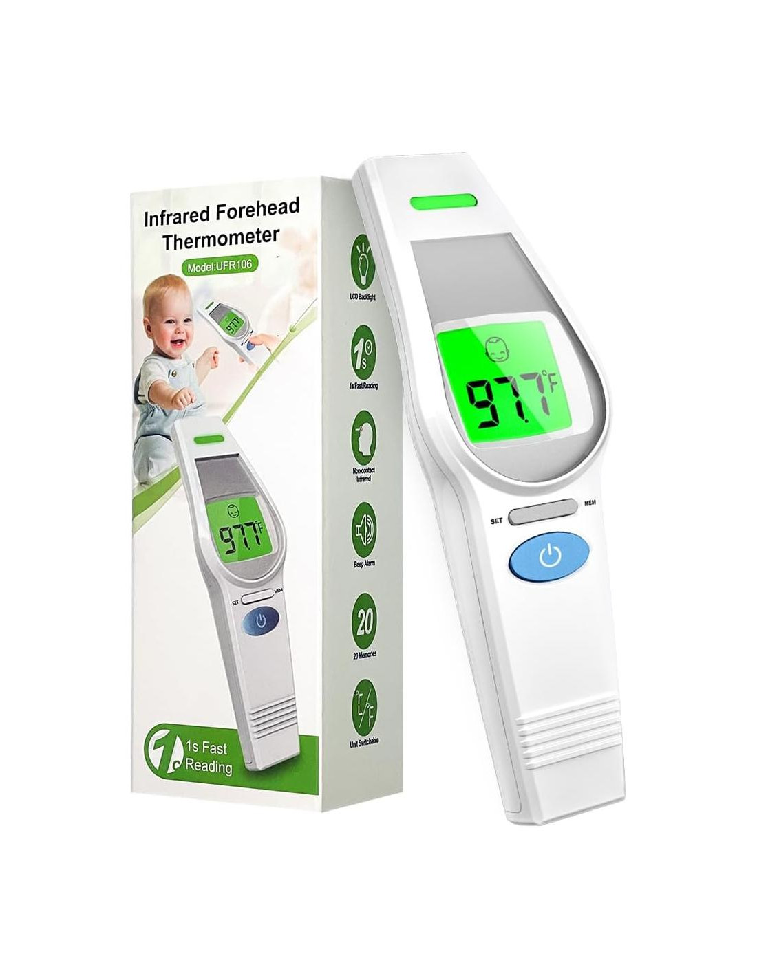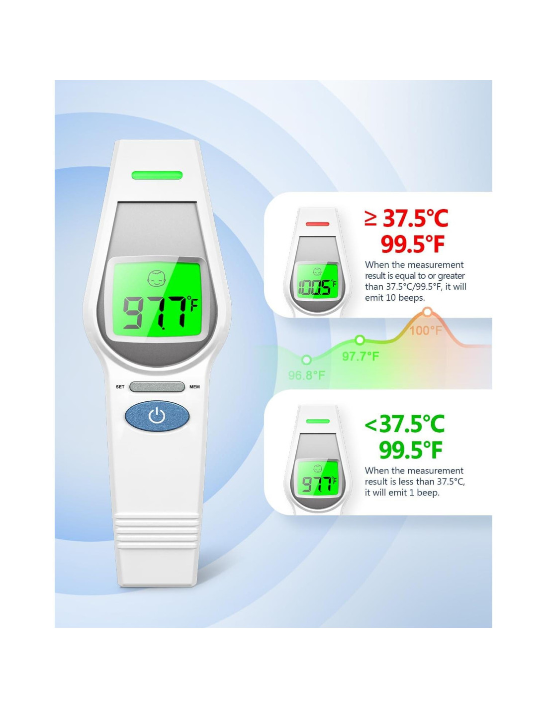 - Unidad de temperatura F y C Cambiando: el termómetro de frente prioriza la conveniencia del usuario al permitir un cambio sin esfuerzo entre las unidades de fahrenheit (F) y celsius (C)