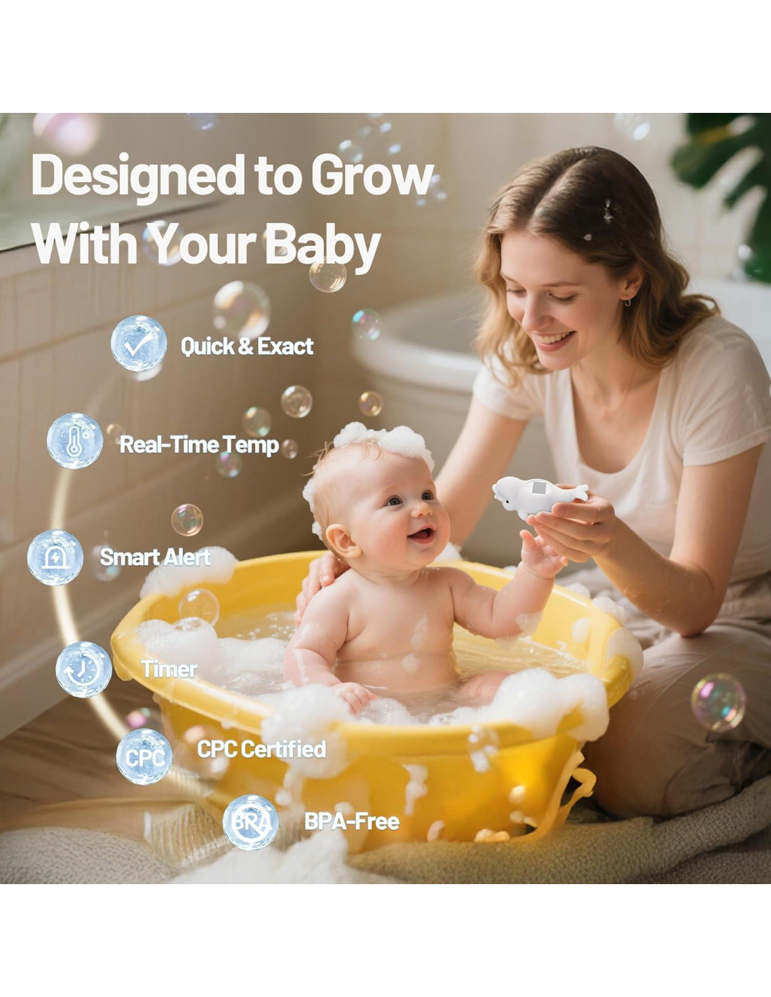 - Confiable y preciso: El termómetro de baño para bebés mide rápidamente la temperatura del agua y de la habitación con pantalla en tiempo real, y también funciona como un temporizador, esencial para un baño seguro de recién nacidos, ya que se debe evitar un tiempo prolongado de baño.