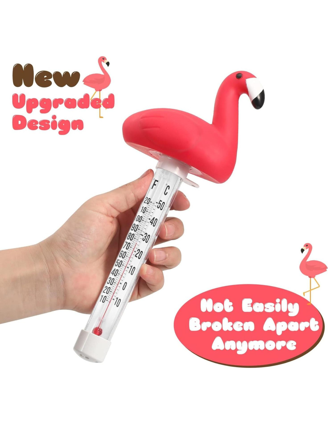 Termómetro de piscina flotante, termómetro de piscina para inmersión fría, pantalla grande con cuerda fácil de leer, resistente a impactos, para piscinas, spas, jacuzzis y acuarios interiores y exteriores (Flamingo)