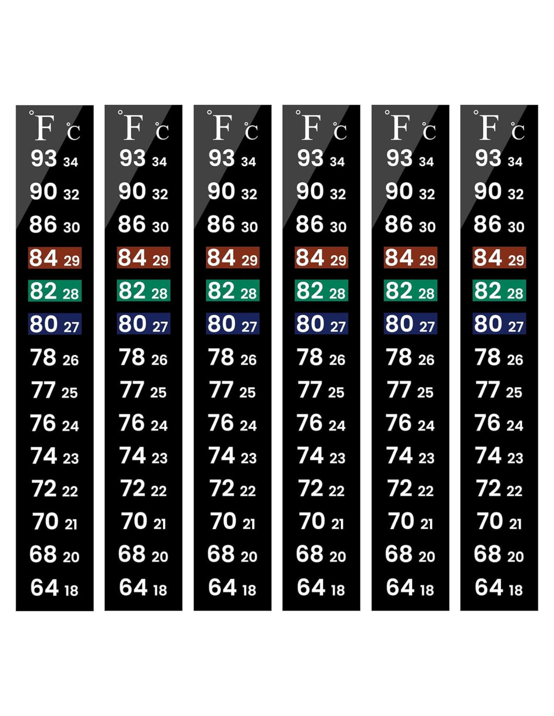 - Incluye: 6 tiras de termómetro para acuario. Dimensiones: 13.0 cm (L) x 1.8 cm (W)