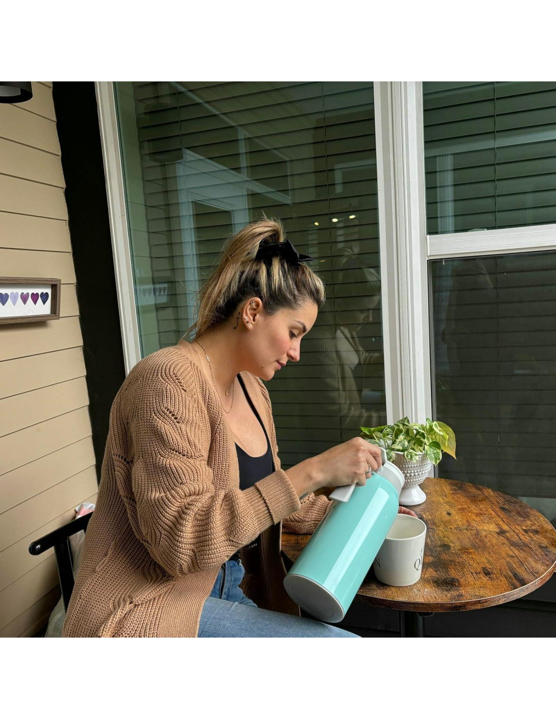 - CALIDAD Y DURABILIDAD: Construido con tapa libre de BPA y duradero acero inoxidable de grado alimenticio 18/8 en el interior y exterior, nuestro termo de vacío es perfecto para usar como dispensador de termo de té/café, jarra de leche, jarra de crema, jugo, vino, jarra de agua caliente.