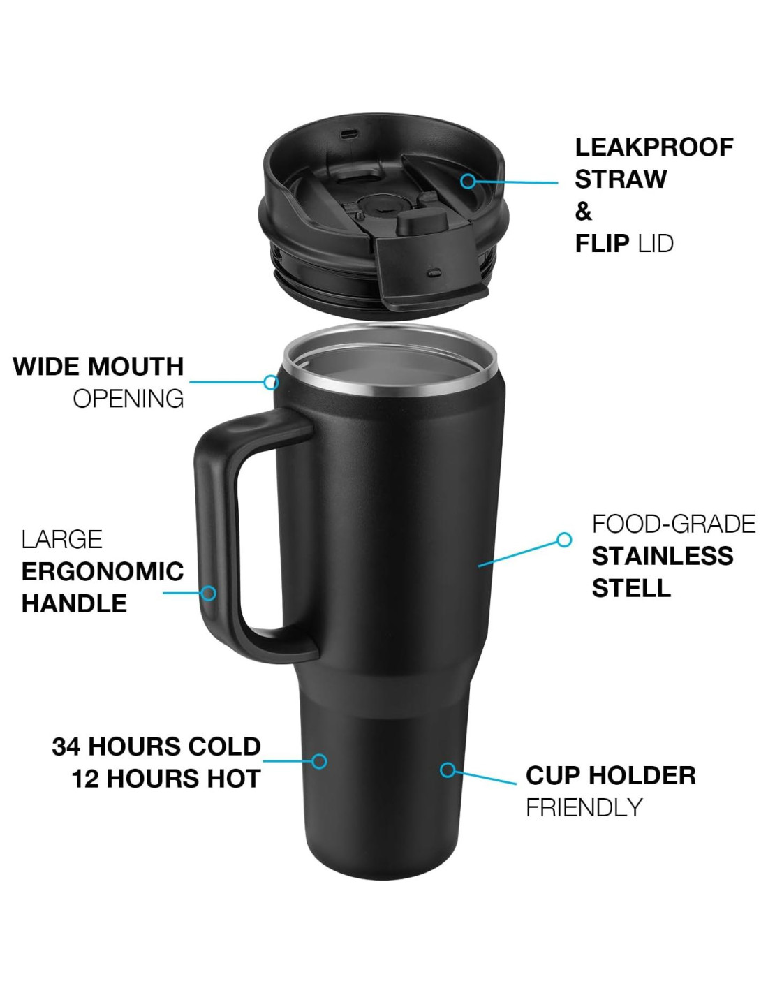 - GRAN ASA Y AGARRE CÓMODO: Nuestro termo con asa está diseñado con un asa de fácil agarre, contorneada con un espacio para tu pulgar, el asa es cómoda de sostener, incluye una base del tamaño perfecto que se adapta a la mayoría de los portavasos estándar, así que llévalo contigo a cualquier lugar