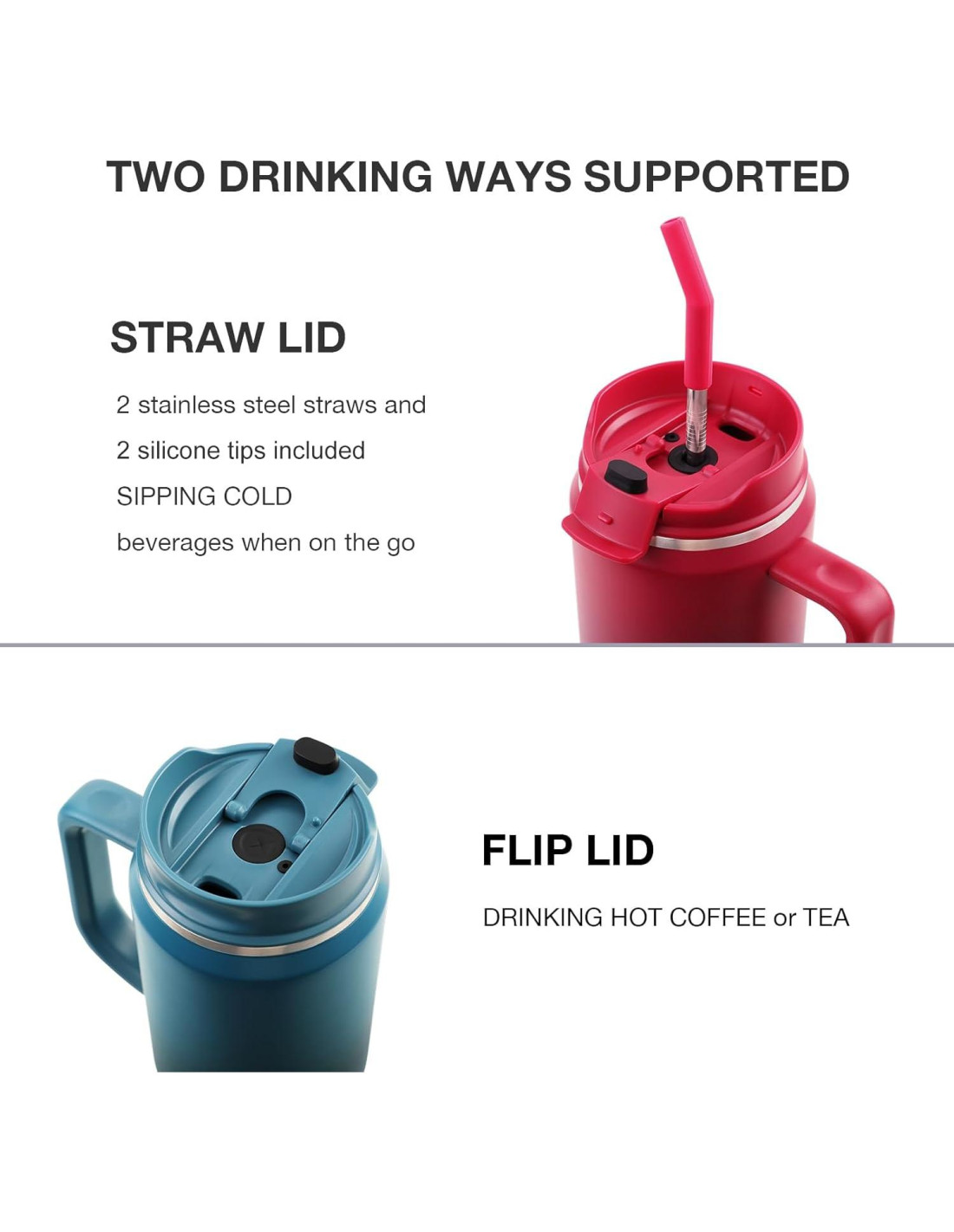 - TERMOS AISLADOS: El termo de 40 oz de EALGRO con asa está hecho de acero inoxidable de grado alimenticio con doble pared al vacío, nuestros termos fríos y calientes mantienen tus bebidas favoritas CALIENTES durante 12 horas y FRÍAS durante 34 horas, y el hielo dura toda la noche