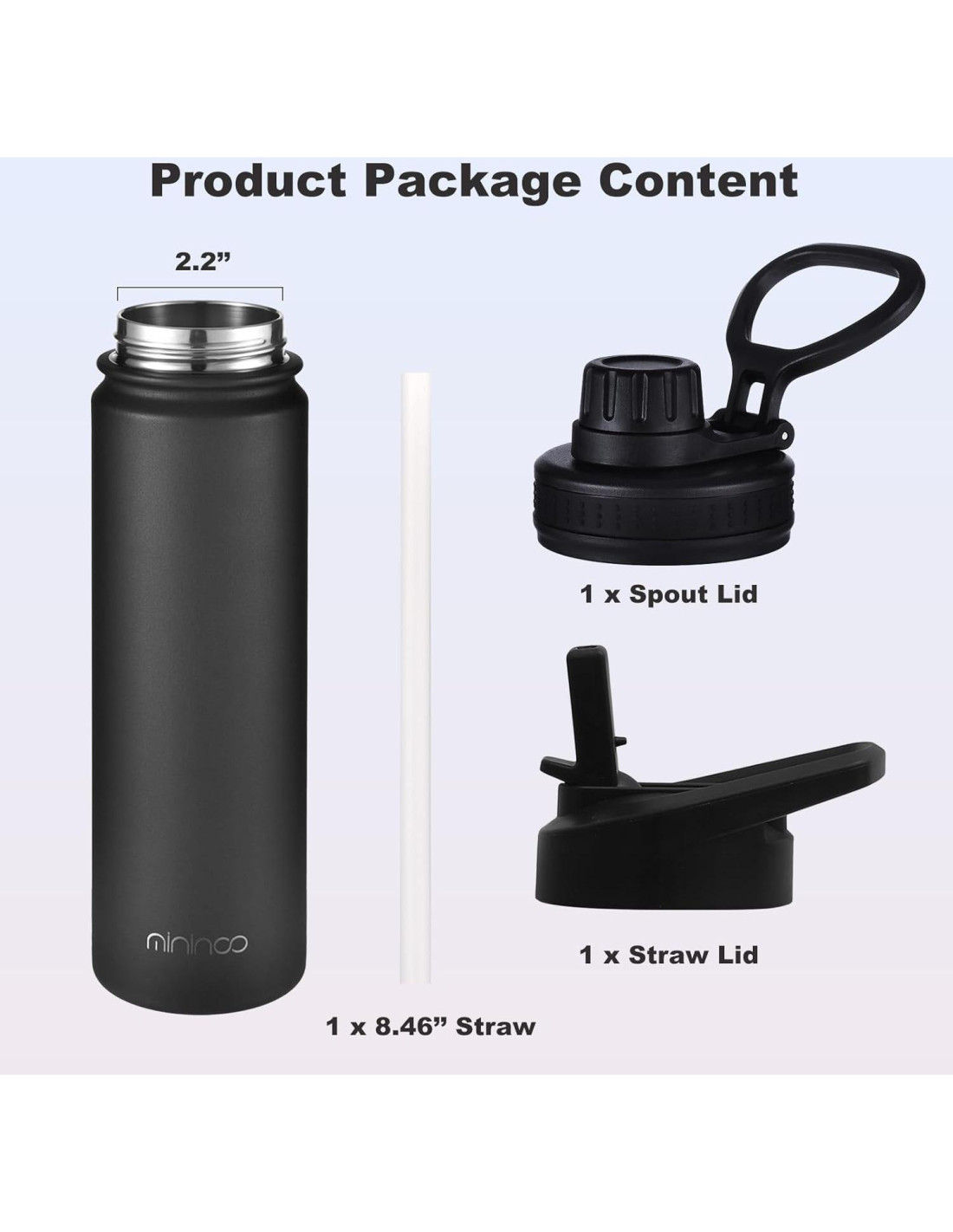 - Componentes incluidos: 2 Tapas: Tapa con Popote y Tapa de Chorro, Botella de Agua de Boca Ancha de Acero Inoxidable