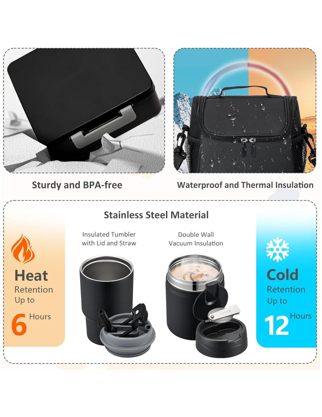 - Solución Completa para Preparar Comidas - Incluye una caja bento amigable para niños (rejilla de hielo removible y bandeja interior desmontable), tarro de comida aislado de 17OZ (500ml) con cuchara plegable, botella de agua para niños de 13.5OZ (400ml) y una bolsa térmica aislada. Perfecto para comidas, bocadillos, bebidas y conveniencia en movimiento.
