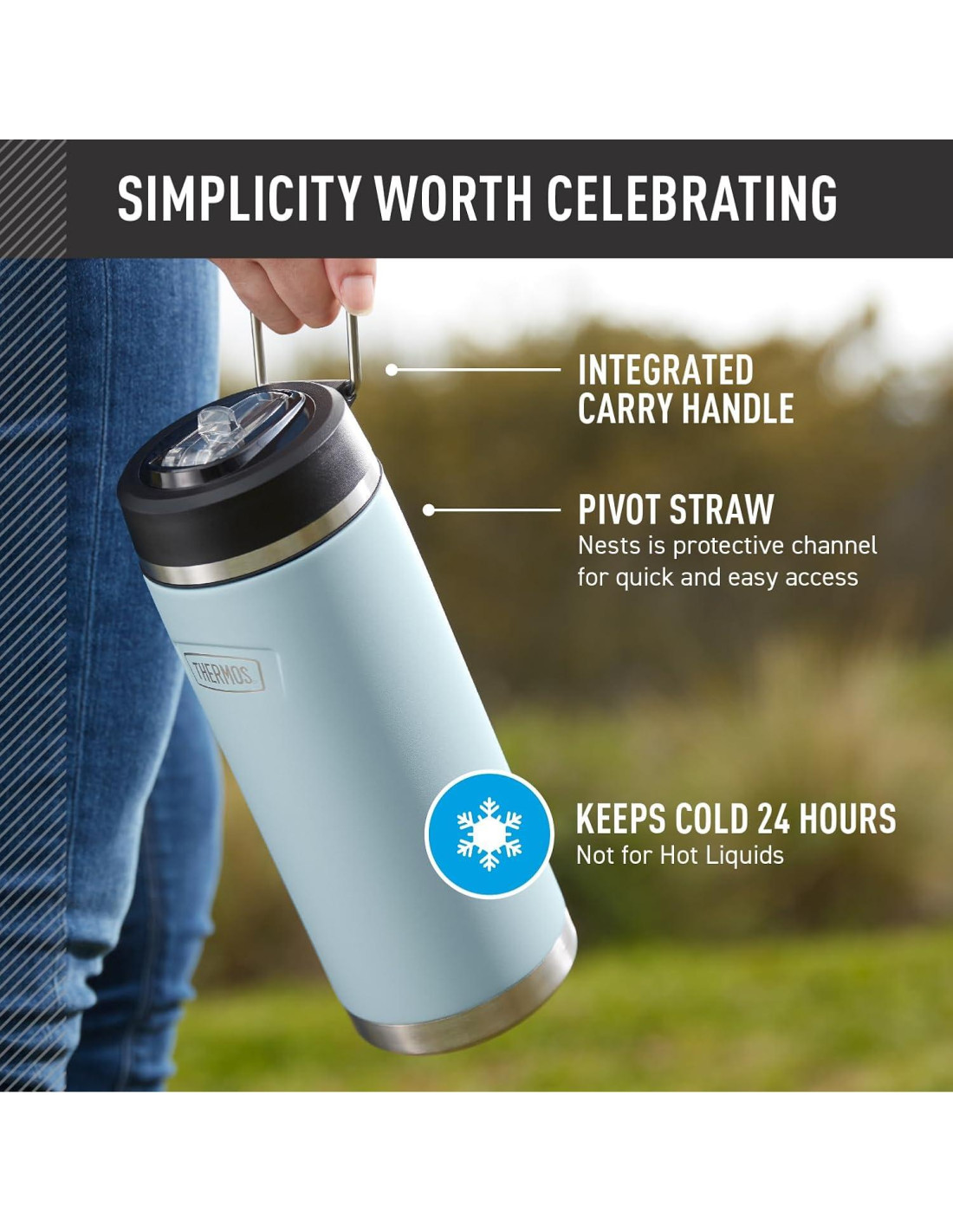 Comienza frío. Se mantiene frío. La botella de agua de acero inoxidable de 32oz de la SERIE ICON DE THERMOS te mantiene hidratado para enfrentar el día. Desde la base GRIPTEC hasta la superior aislamiento al vacío y el duradero acabado TRUE-COAT, la SERIE ICON DE THERMOS es una celebración de lo que nos ha hecho prosperar durante más de un siglo: diseño meticuloso, ingeniería reflexiva y un deseo incesante de hacer que los días de las personas sean más fáciles, cada vez. También equipada con un duradero popote pivotante hecho con TRITAN de Eastman y una abertura de boca ancha para mantener el ritmo de tu día ajetreado. Ningún detalle se deja atrás. No apto para líquidos calientes. Apta para lavavajillas (apta para la rejilla superior del lavavajillas para mayor comodidad).