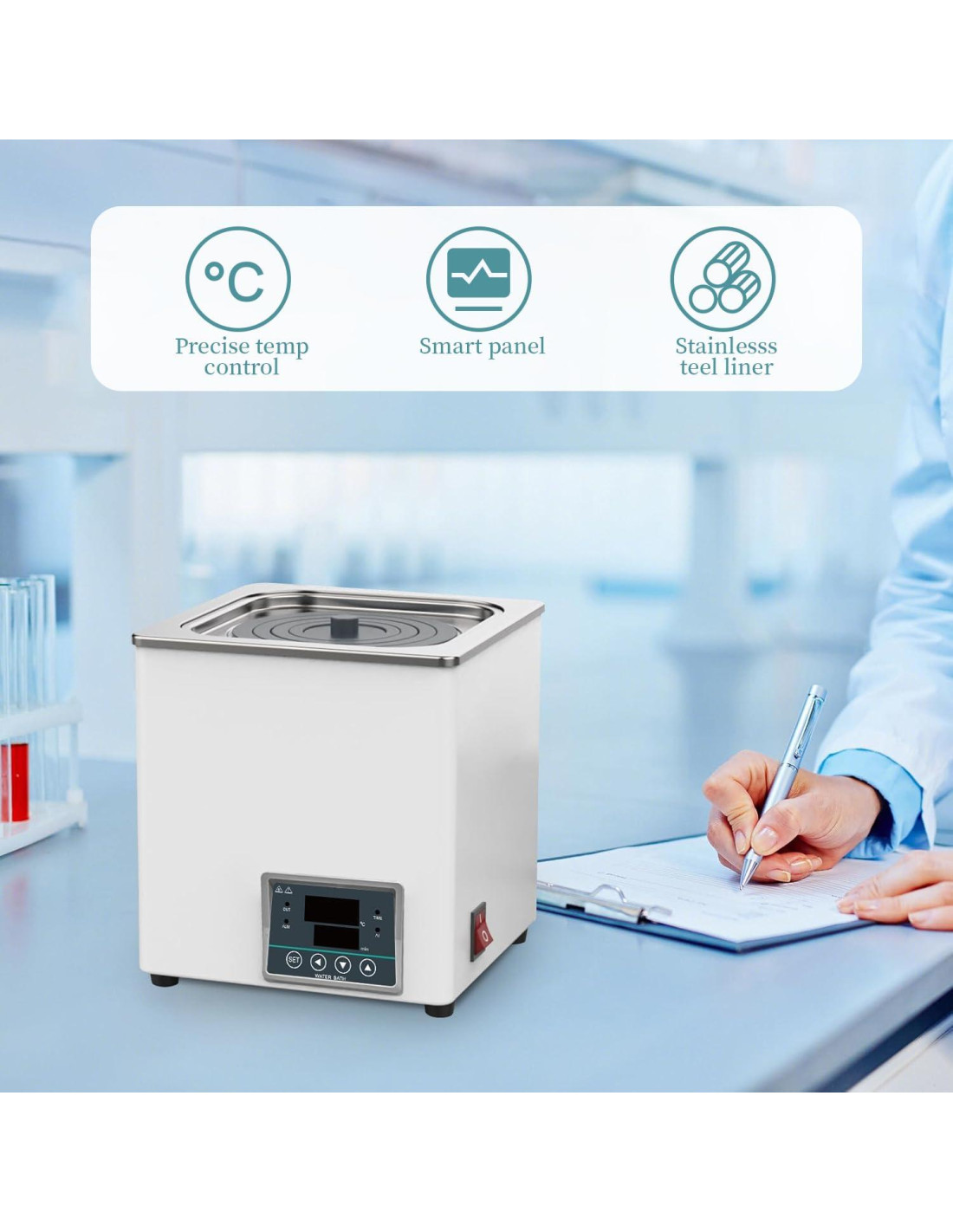 - [CONTROL DE TEMPERATURA PRECISO] El baño de agua termostático de laboratorio tiene un amplio rango de temperatura con controlador de temperatura y temporizador incorporados, que pueden controlar eficientemente la temperatura de calentamiento y el tiempo, y la temperatura puede aumentar desde la temperatura ambiente hasta 99.9C con una precisión de control de temperatura de solo +/-0.1C.