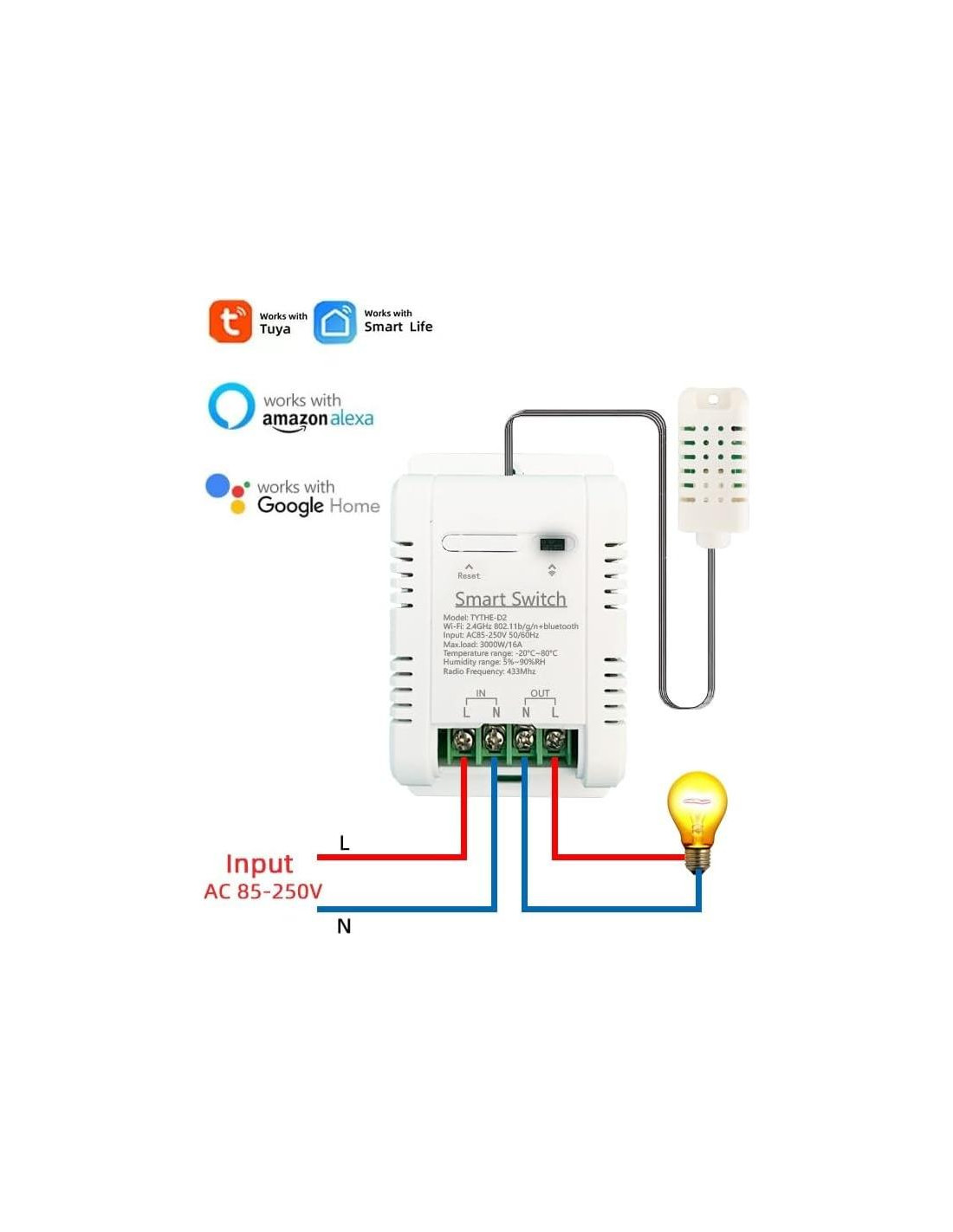 - Componentes incluidos: 1PCS interruptor wifi y 1pcs cable de sensor de temperatura y humedad