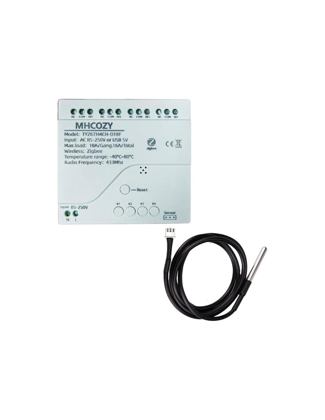 - Componentes incluidos: Placa de relé de contacto seco zigbee 2mqtt zha de 4 canales y sonda de temperatura DS18B20