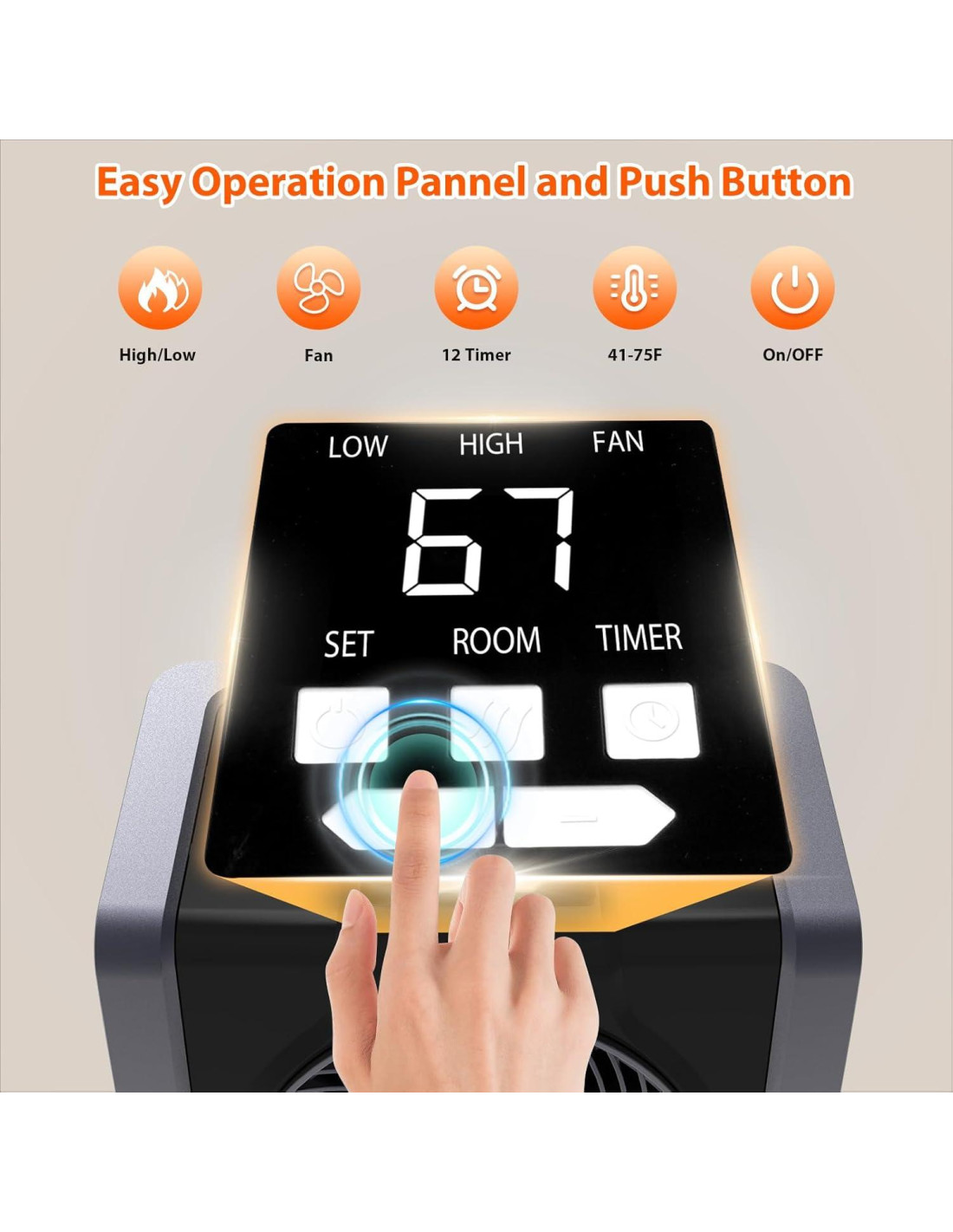 - [Control de Temperatura Automatizado] Detecta inteligentemente los niveles de calefacción y circulación de aire requeridos para mantener las temperaturas preestablecidas, eliminando la necesidad de ajustes manuales y asegurando una experiencia de calefacción eficiente. Ofrece dos configuraciones de calefacción sin ruido (Bajo/750W, Alto/1500W) y la opción de operación solo con ventilador para personalizar la salida de calor y optimizar el consumo de energía.