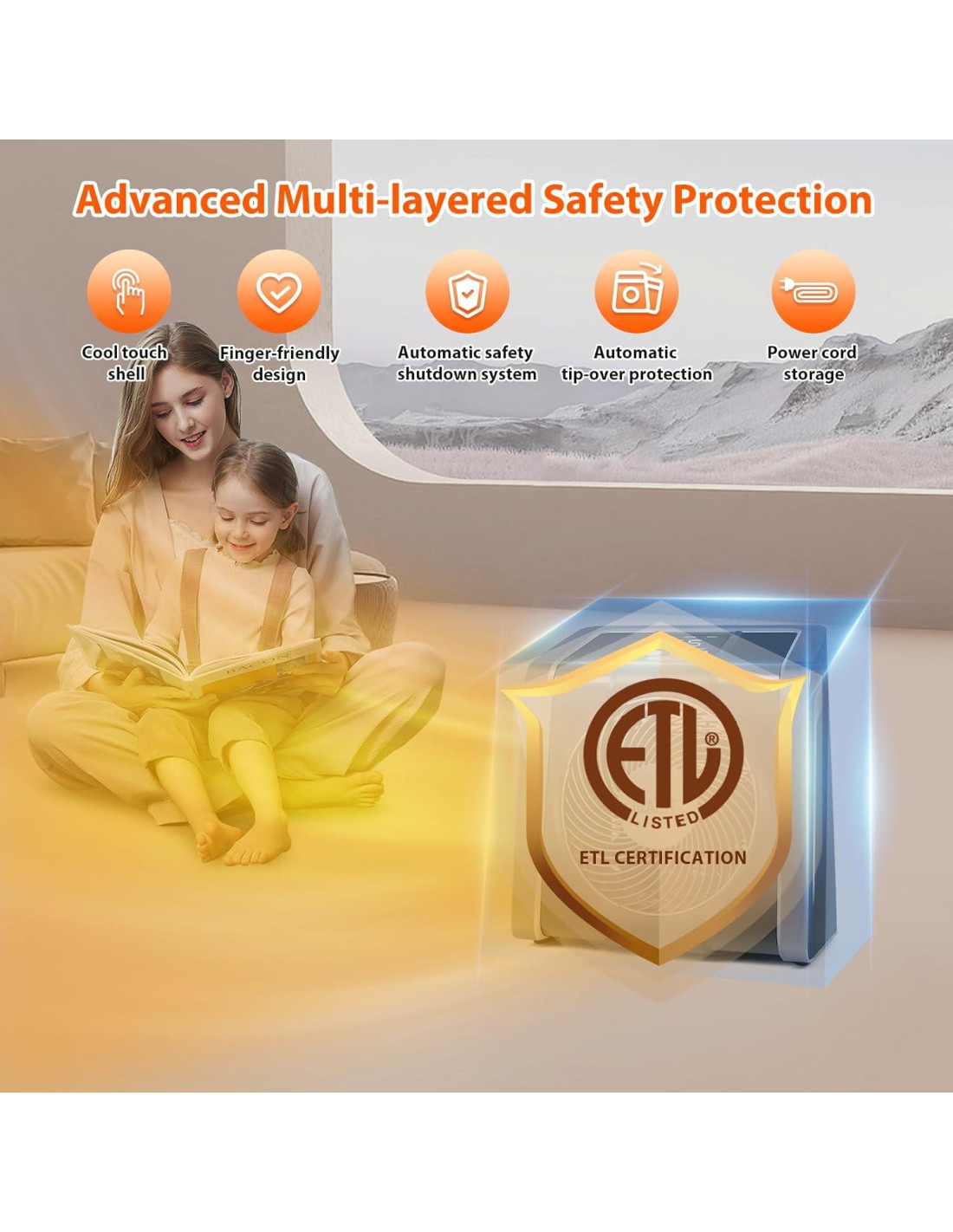 - [Calefacción Segura] Certificado por ETL y equipado con características de seguridad avanzadas, incluyendo un exterior de tacto frío, protección contra vuelcos y apagado automático por sobrecalentamiento.
