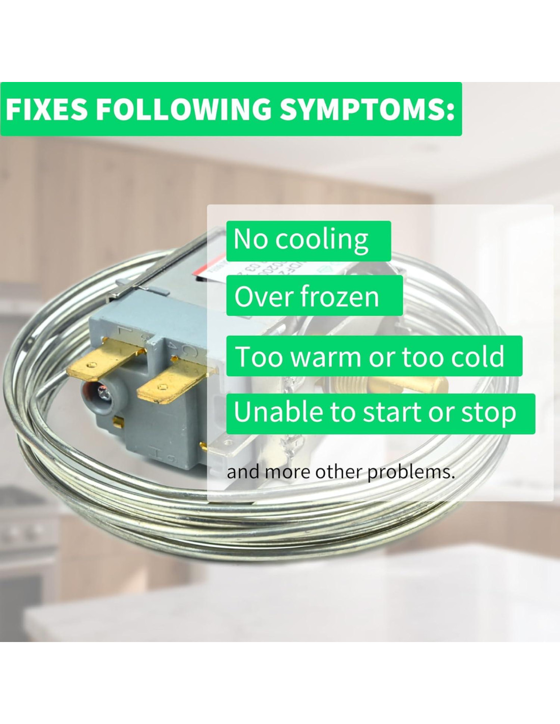 Pregunta: Mi termostato de congelador está roto, ¿esto coincidirá con mi congelador? Respuesta: por favor verifique los agujeros de los tornillos y la apariencia del producto. Si se ven exactamente iguales, entonces este termostato de congelador es totalmente compatible con múltiples modelos de congeladores.