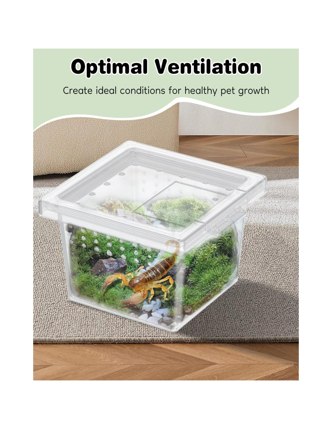 - Mini y Portátil: Tamaño Interno: 5.8 cm L x 5.8 cm W x 4.5 cm H; Tamaño Externo: 7.1 cm L x 6.8 cm W x 4.5 cm H. El terrario compacto para arañas se adapta a cualquier lugar en tu espacio mientras proporciona un alojamiento cómodo para tus pequeñas mascotas - escorpiones, ciempiés, mantis, etc.