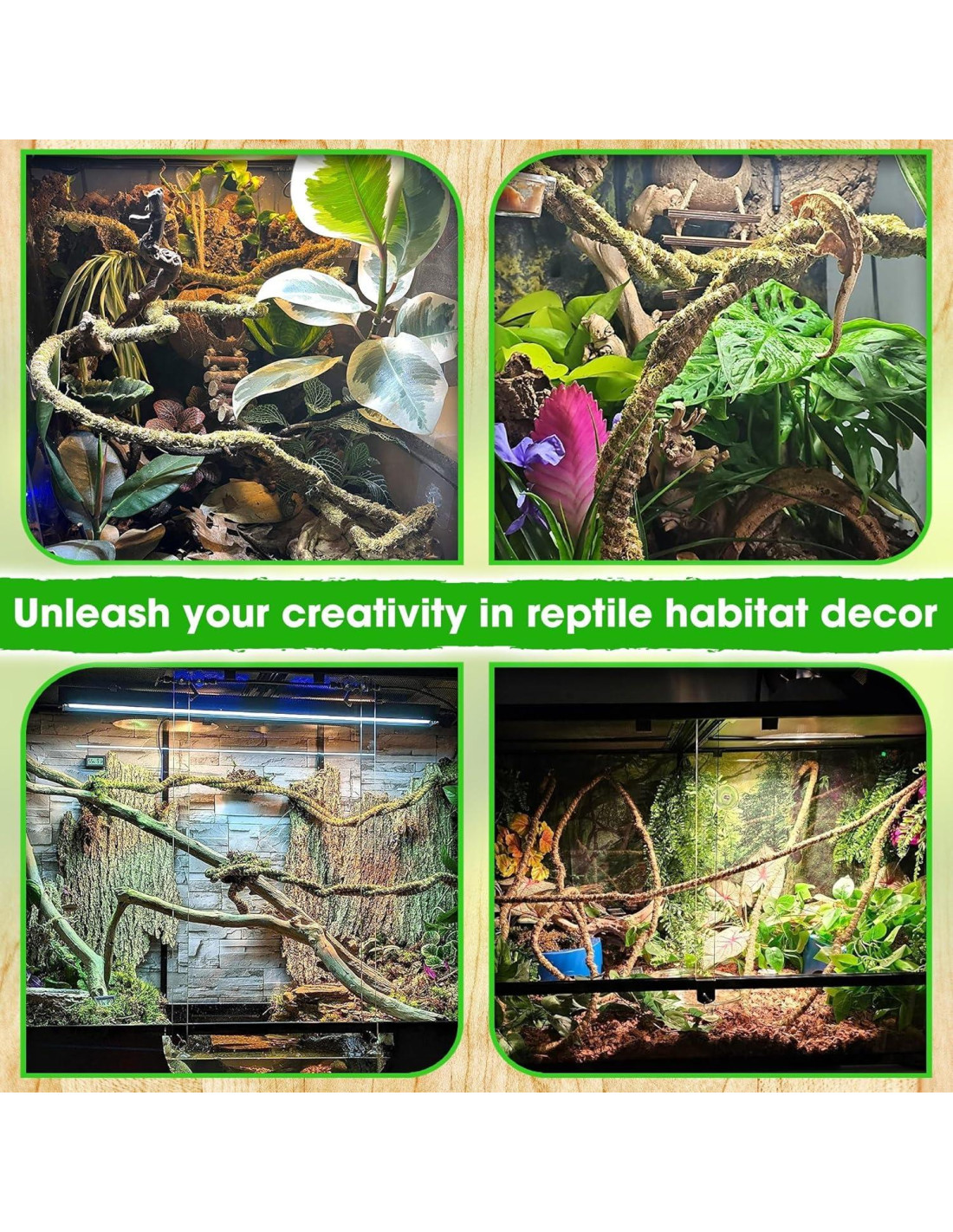 - Si está buscando una vid de reptil o decoración de hábitat para escalar, nuestra vid de musgo es perfecta para usted. Puede doblarla fácilmente en cualquier forma que desee y colocarla en diferentes tamaños de tanques de terrario. Con una longitud de 3 metros y 1.5 cm de diámetro, los accesorios para tanques de reptiles son lo suficientemente largos para que los reptiles escalen y se muevan con más espacio.