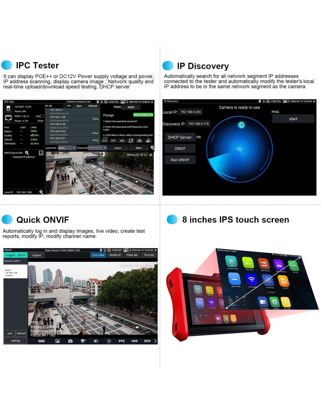 - Tamaño: Probador de cámara IP de 8 pulgadas