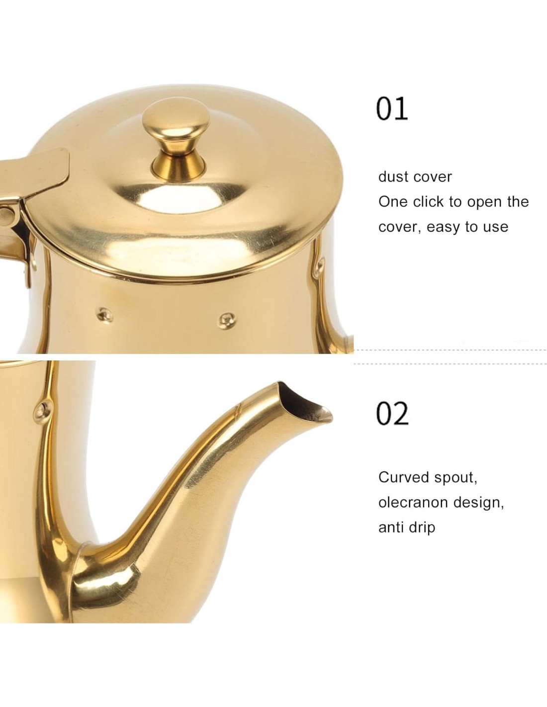 AMPLIA GAMA DE APLICACIONES: Si te estás relajando en casa los fines de semana, entonces el café y el té son los compañeros perfectos para el tiempo de ocio, nuestra tetera de café y té será una gran elección para ti. Ampliamente utilizada en casa, oficina, escuela, apartamento, hotel, restaurante y otros lugares, también es ideal para familia y amigos. MATERIAL: La tetera está hecha de acero inoxidable, resistente al desgaste, fuerte y con superficie pulida, no fácil de deformar, saludable, larga vida útil. Ahorra tus gastos y te proporciona una buena experiencia de uso. PICO AERODINÁMICO: Nuestra tetera con filtro de malla está diseñada con un pico aerodinámico, pico exquisito, pico suave, curva de agua concentrada, diseño de gran capacidad que puede satisfacer las necesidades de toda la familia. Y el agarre del mango es cómodo, ergonómico, ahorra trabajo, ángulo de inclinación para prevenir quemaduras al verter agua hirviendo, té o café. Característica: 1. Acero Inoxidable: La tetera de café y té está hecha de materiales de acero inoxidable de primera calidad que son pulidos, a prueba de, y fáciles de. 2. Infusor de Té: Esta tetera tiene un infusor de té con filtro, filtración precisa, que puede filtrar eficazmente grandes y pequeños. 3. Salida de Agua Aerodinámica: Nuestra tetera tiene un diseño de salida de agua aerodinámica, salida de agua exquisita, salida de agua fluida y hermosa curva de agua concentrada. 4. Mango Ergonómico: La tetera de café y té tiene un mango ergonómico diseñado para ser cómodo y fácil de sostener, y el ángulo inclinado previene quemaduras al verter agua hirviendo, té o café. 5. Ampliamente Aplicable: La tetera es muy adecuada para beber té y café en varios lugares, como hoteles, restaurantes, hogares, etc. Especificación: Tipo de Artículo: Tetera de Café y Té Material: Acero inoxidable Peso Bruto: 211g (7.4oz) Capacidad: 500ml Tamaño de la Tetera: 14x18cm (5.5x7.1in) Tamaño del Infusor de Té: 2.5x7.9cm (0.98x3.1in) Lista de Paquete: 1 x Tetera de Café y Té Proporcionándote una amplia gama de artículos necesarios para tu vida.