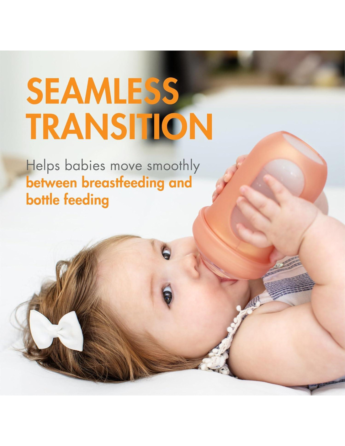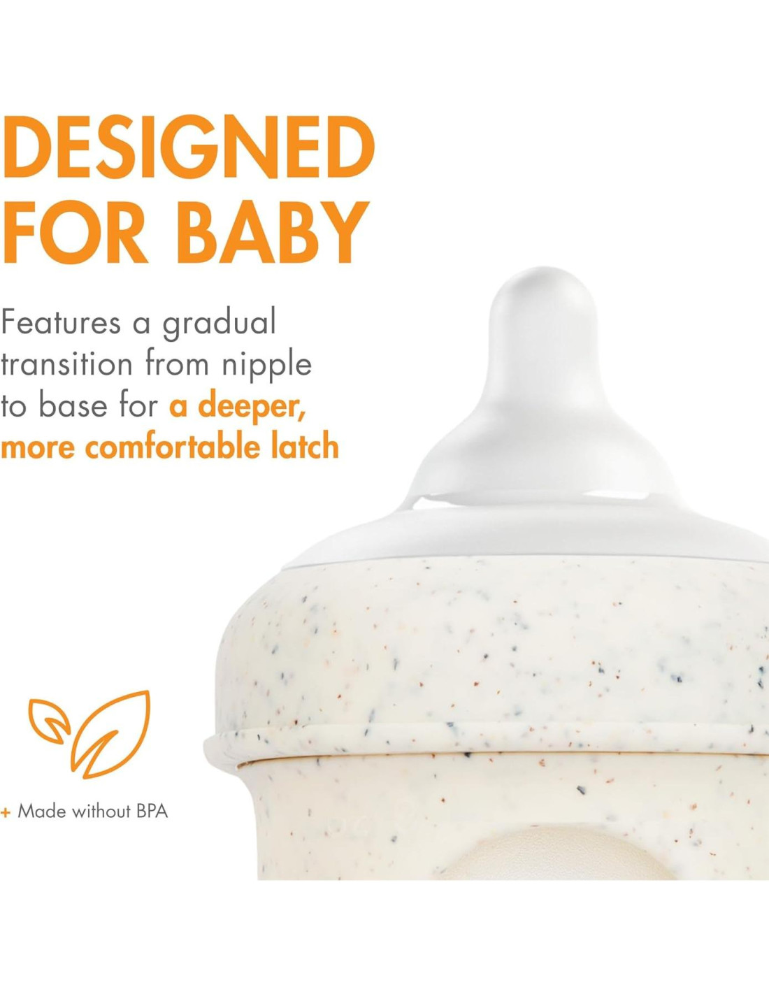 - Transición Sin Costuras: Nursh Curve ofrece una transición gradual de la tetina a la base para un agarre más profundo y cómodo a medida que los pequeños se mueven entre la lactancia materna y los biberones