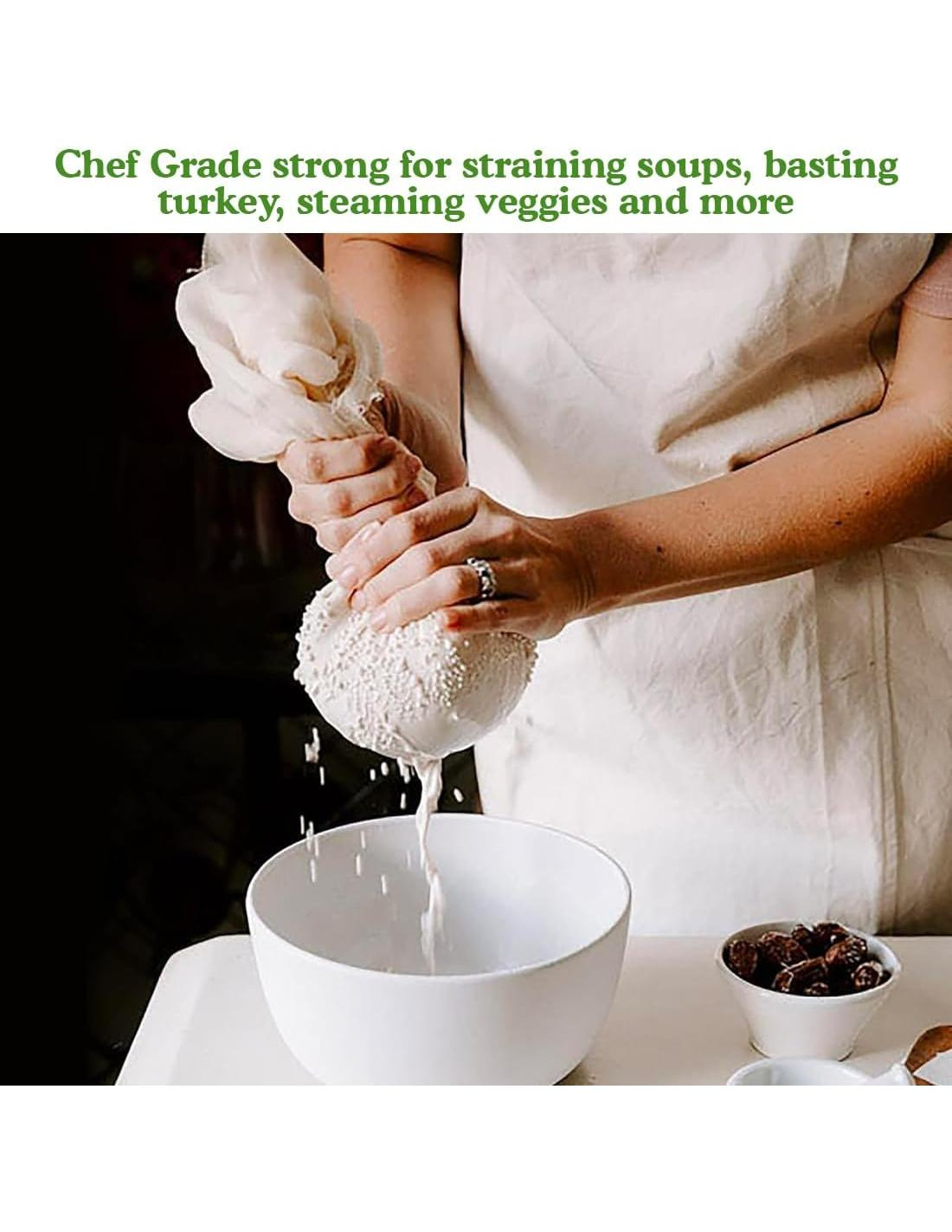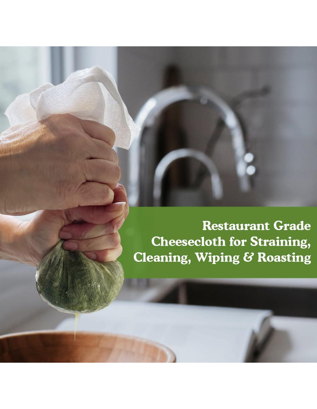 - TELA DE QUESO DE GRADO CHEF PROFESIONAL: Hecha de duradero 100% algodón, nuestras telas de queso pasan por rigurosas pruebas de laboratorio y cumplen con estrictos estándares de seguridad alimentaria. Está libre de metales, blanqueadores y tintes; segura para todas tus necesidades de preparación de alimentos y del hogar.