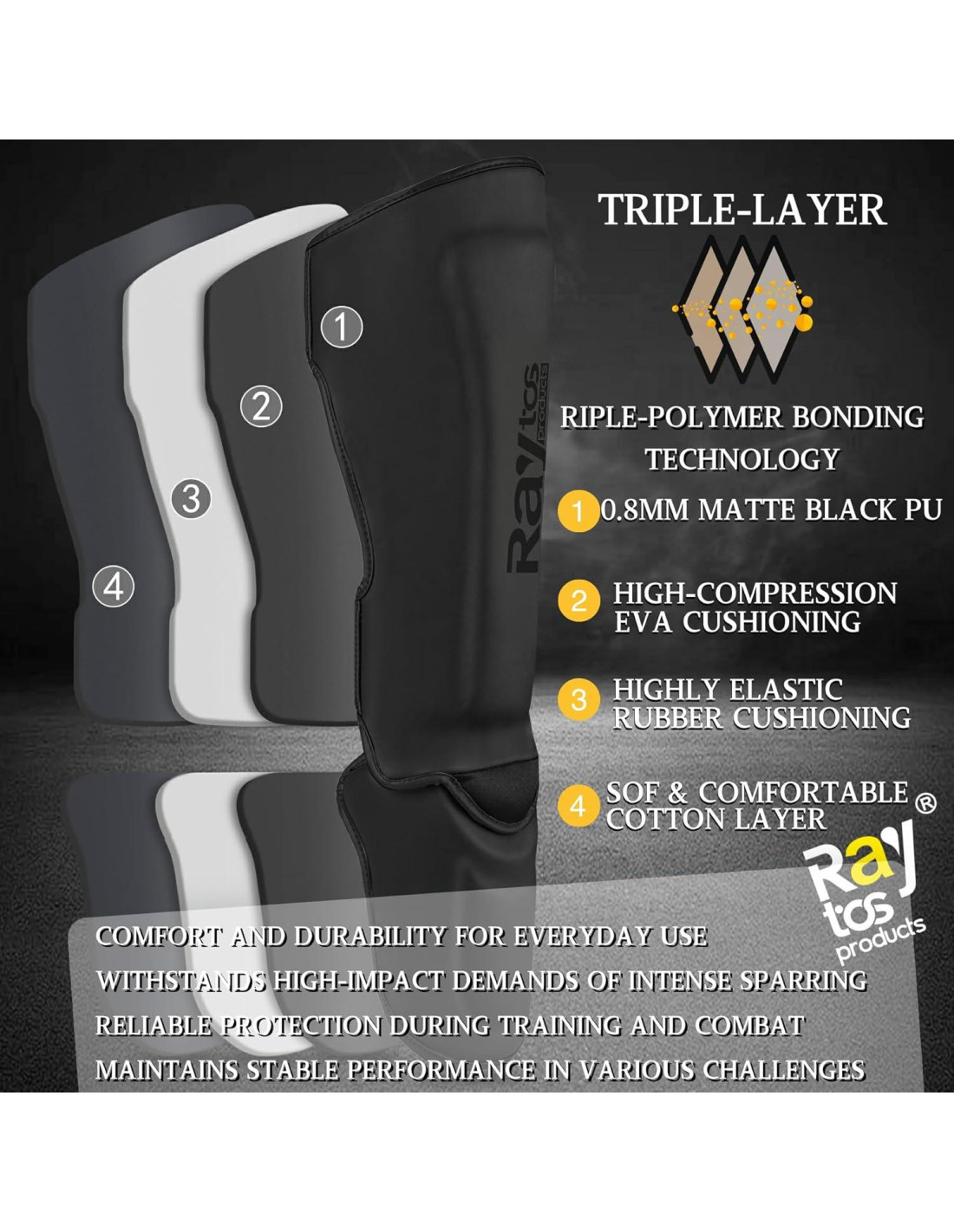 - [Protectores de Espinillas Premium de Muay Thai, MMA y Kickboxing] Los protectores de espinillas Raytos están fabricados con materiales de primera calidad para una durabilidad excepcional, lo que los hace perfectos para Muay Thai, MMA, kickboxing, boxeo y otros entrenamientos y sparring de artes marciales. Estos protectores de espinillas de alta calidad brindan la máxima protección y rendimiento para los entusiastas de los deportes de combate.