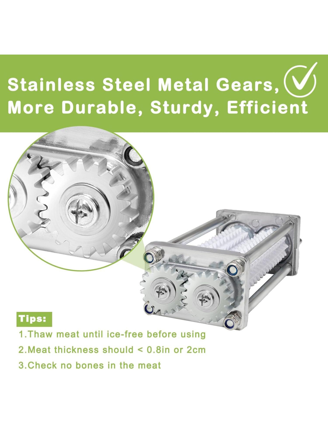 - CALIDAD PREMIUM - La construcción de 2 engranajes de acero inoxidable proporciona una herramienta robusta, potente y duradera para la cocina, y no se oxidará. Fácil de configurar y usar. La operación es suave y precisa. Funciona en silencio y no es demasiado ruidoso. Tiene un motor potente que lo hace más suave y eficiente para ablandar carnes. Es una inversión que vale la pena para cualquier hogar que busque hacer que sus carnes sean aún más deliciosas y tiernas.