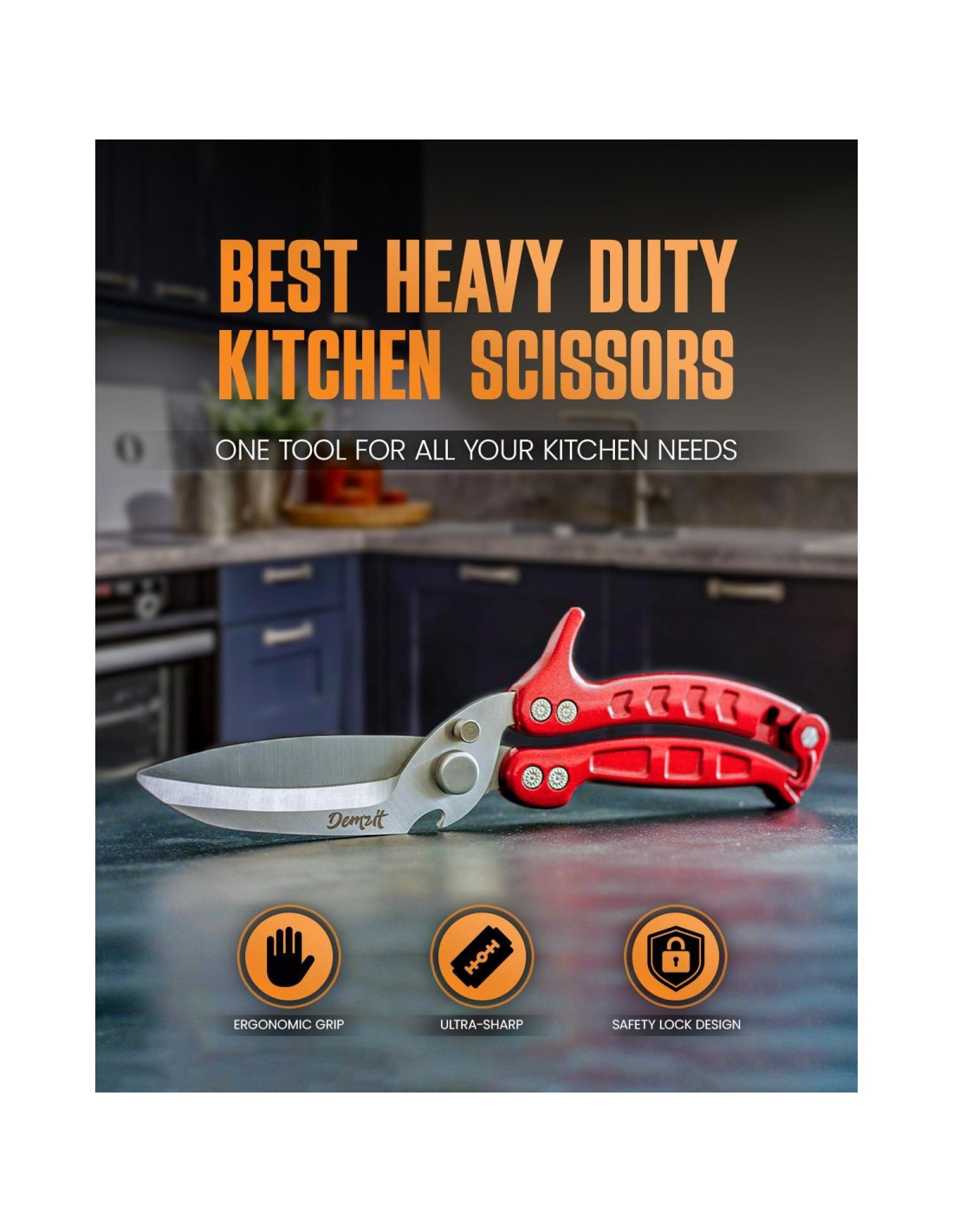- CUCHILLAS ULTRA AFILADAS PARA TAREAS CULINARIAS DIFÍCILES: Diseñadas con acero inoxidable de primera calidad, estas tijeras cortan sin esfuerzo mariscos, aves de corral, carne, huesos de pavo e incluso alimentos más duros. Perfectas para cocinar a diario, preparar comidas y manejar todas tus necesidades de corte con facilidad