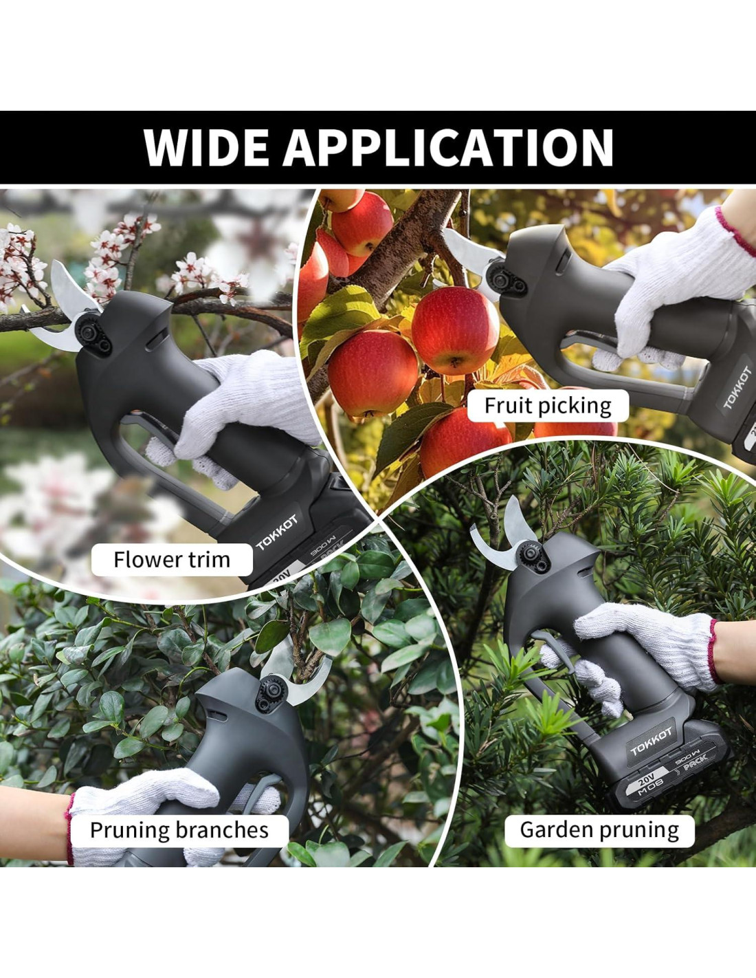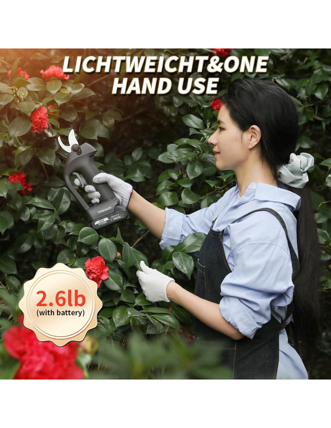 - PODER PARA SUPERAR: Las herramientas TOKKOT están diseñadas para proporcionar mayor potencia, portabilidad y tiempo de funcionamiento, las tijeras de podar eléctricas TOKKOT eliminan la poda manual reduciendo la fatiga muscular; los motores sin escobillas proporcionan mayor potencia de corte, son perfectas para horticultores y propietarios