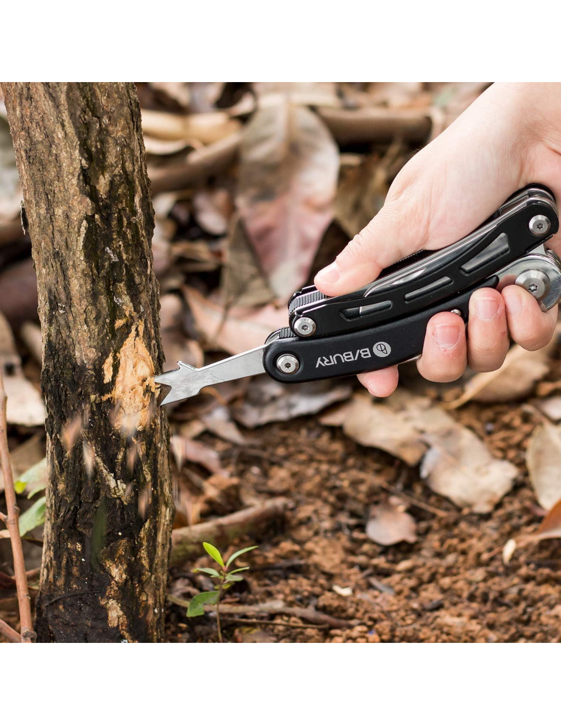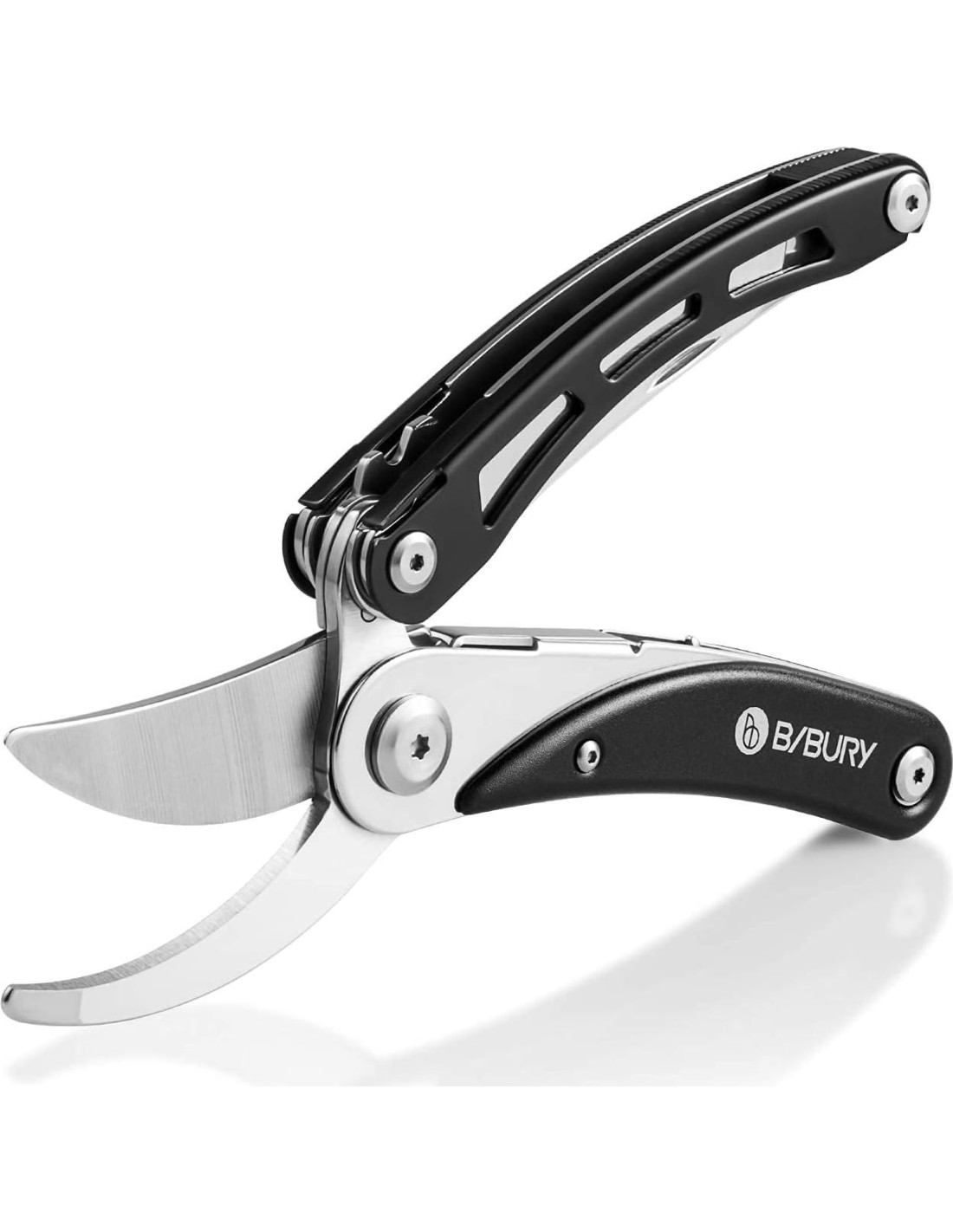 - Tijeras Multifuncionales: Hay 5 funciones para las tijeras de jardinería BIBURY: podadora de jardín, cuchillo de 3.7 centímetros, sierra de madera, gancho, pala de corteza, lo que facilita la vida.