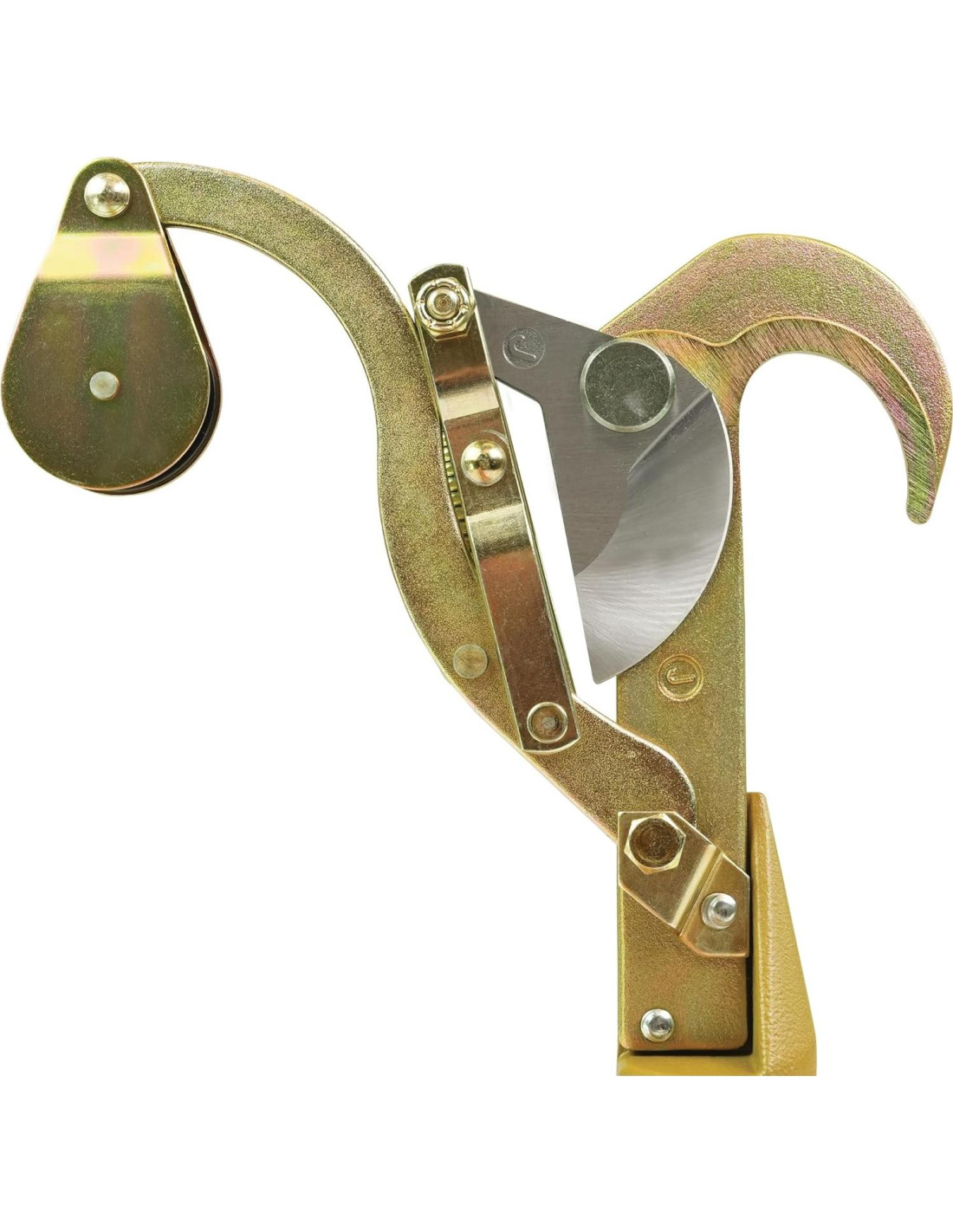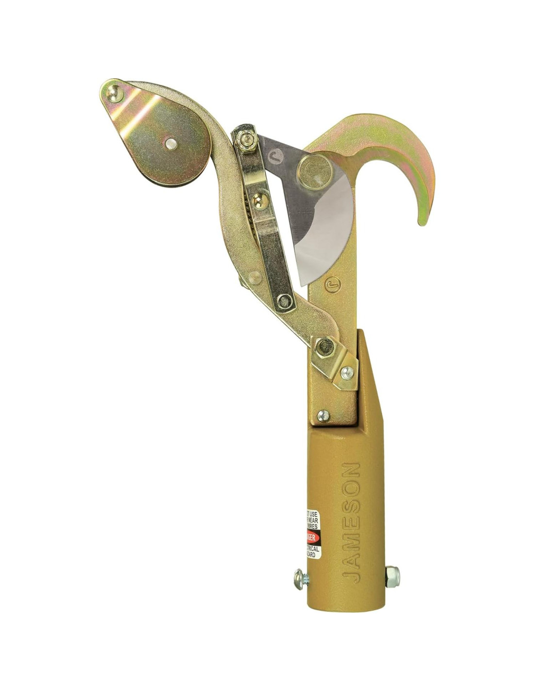 Podadora Jameson con adaptador de polea sin giro. La acción de corte de bypass proporciona un corte limpio y al ras con capacidad de corte de 1.25" (3.18 cm). La base de aluminio fundido aligera el peso total para una podadora preferida por los "escaladores". Al conectar un adaptador a la cabeza de la podadora, puedes intercambiar rápidamente la cabeza entre la mayoría de las extensiones de fibra de vidrio de grado utilitario.