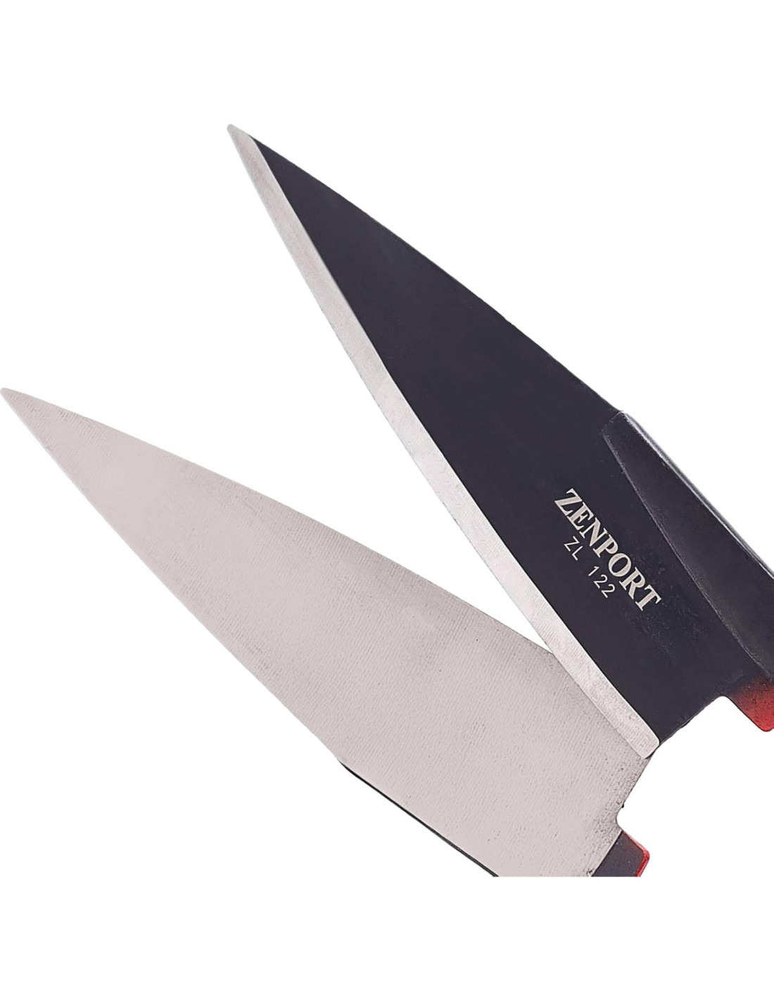 Las tijeras de cebolla y oveja de doble arco de alta resistencia Zenport ZL122 con cuchillas tratadas con carbono de 6.5 pulgadas de largo se utilizan para el esquilado cercano de lana de oveja, la cosecha de plantas delicadas y el corte de cebollas durante la cosecha. La acción de doble arco, con resorte, abre automáticamente las cuchillas después de cada corte. Cuchillas gemelas de 6.5 pulgadas (165 mm) de largo; longitud total de 13 pulgadas (330 mm).