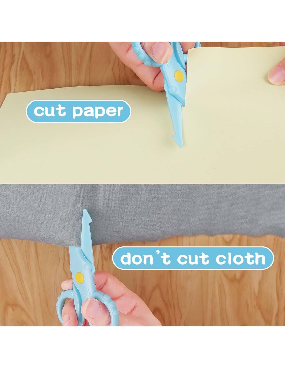 - Las tijeras para niños pequeños están hechas de PS ecológico. Hechas completamente de plástico y sin acero inoxidable, son más adecuadas para niños más pequeños.