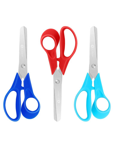 Tijeras para Niños Asdirne, Tijeras para Niños con Mangos de Agarre Cómodo, Punta Romo de Seguridad, 5 Pulgadas (12.7 cm), Paquete de 3