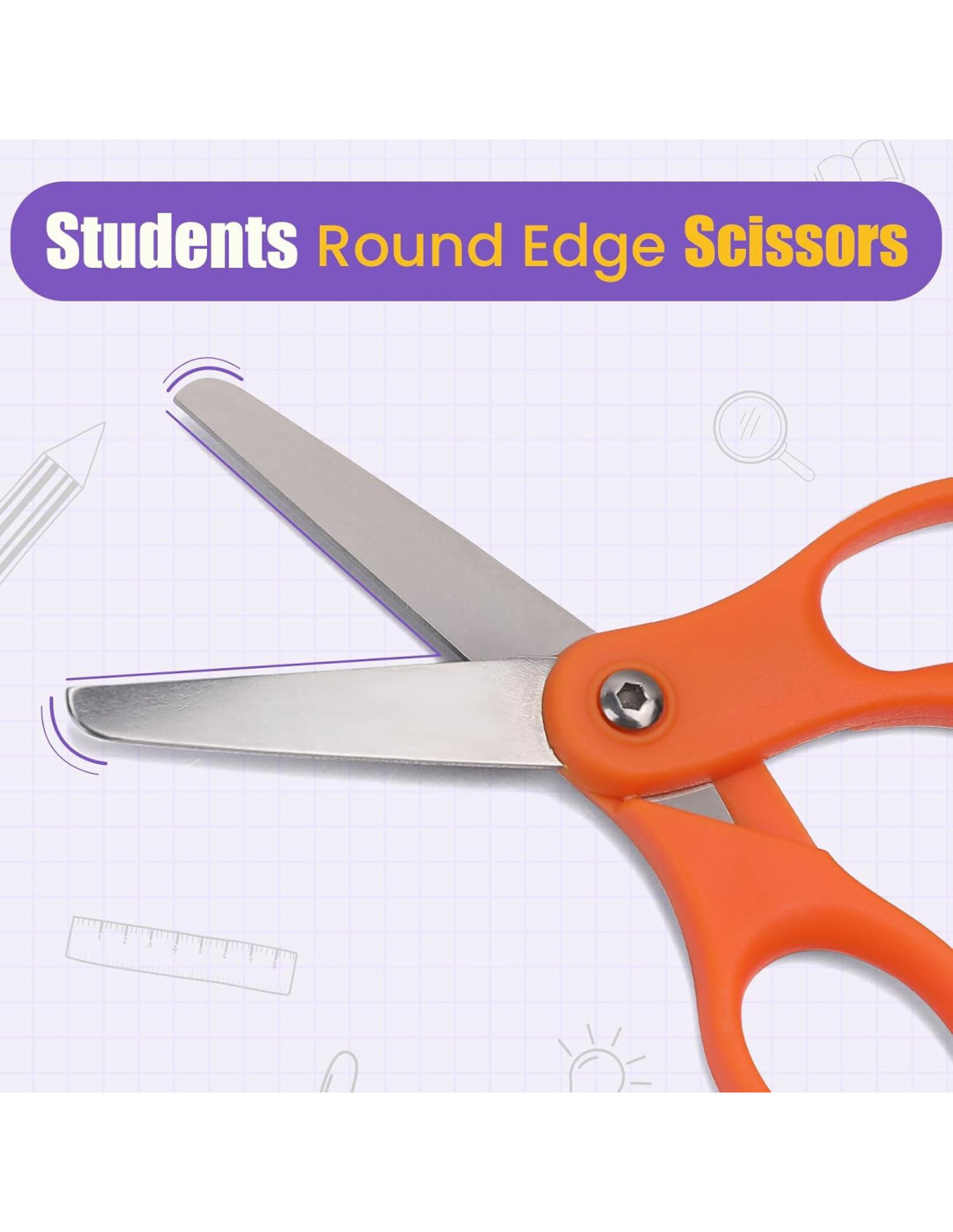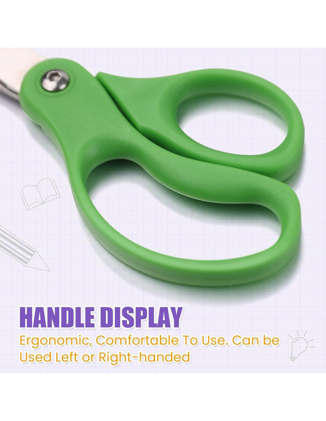 - [Cuchillas de Punta Redonda de Acero Inoxidable] - Las tijeras de seguridad para niños cuentan con cuchillas de acero inoxidable extra fuertes y duraderas. Tijeras para niños de 5" con puntas redondeadas. La punta redonda de seguridad podría proteger a los niños de lastimarse.