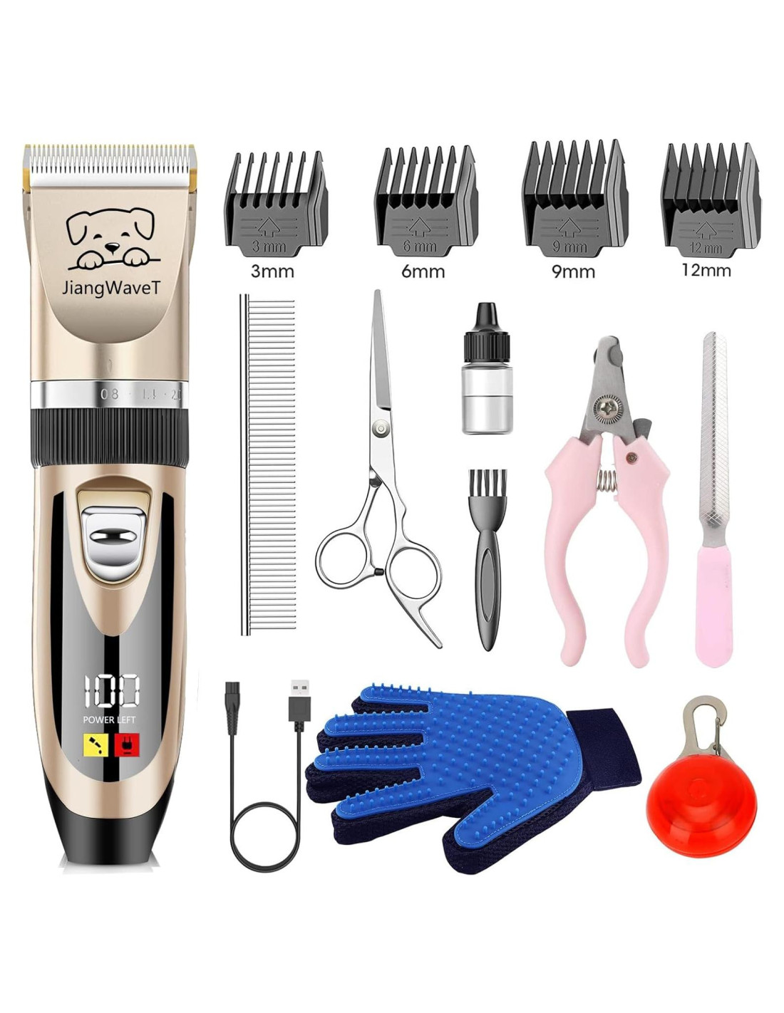 - Kit Profesional de Cuidado para Perros y Gatos, Guante de Cuidado para Mascotas, Luz para Collar de Mascotas: Incluye todas las herramientas necesarias para el cuidado de mascotas (14 tipos), las recortadoras para mascotas son adecuadas para todas las mascotas como caniches, gatos, caballos. Guante de Cuidado para Mascotas: Baña a las mascotas con este guante, que limpiará el pelo de la mascota fácilmente y le dará un suave masaje. Luz para Collar de Mascotas.