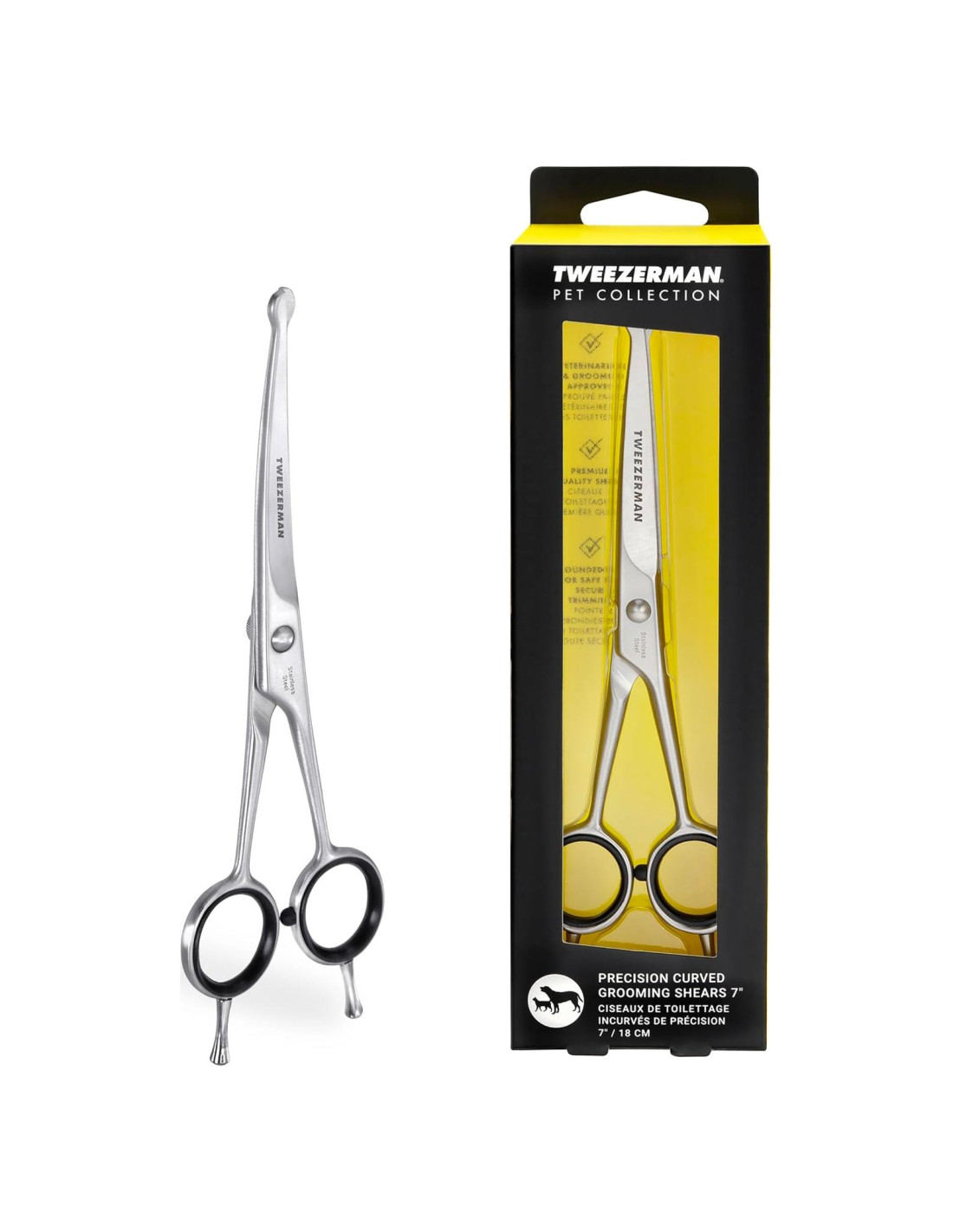 Las tijeras de recorte de acero inoxidable de alto rendimiento y afiladas cuentan con puntas redondeadas que se curvan hacia afuera para recortar de manera segura el pelaje alrededor de los ojos, la nariz y las orejas. Diseñadas con hojas curvadas para guiar la forma del pelaje de su pequeño perro o gato, son ideales para el aseo en casa. Las tijeras de recorte ligeras cuentan con reposabrazos removibles y empuñaduras de goma para mayor comodidad y control. Este artículo es elegible para nuestros servicios de afilado. Ideal para gatos y perros de hasta 13 kg o para recortar la cara, las orejas y las patas de gatos y perros más grandes.