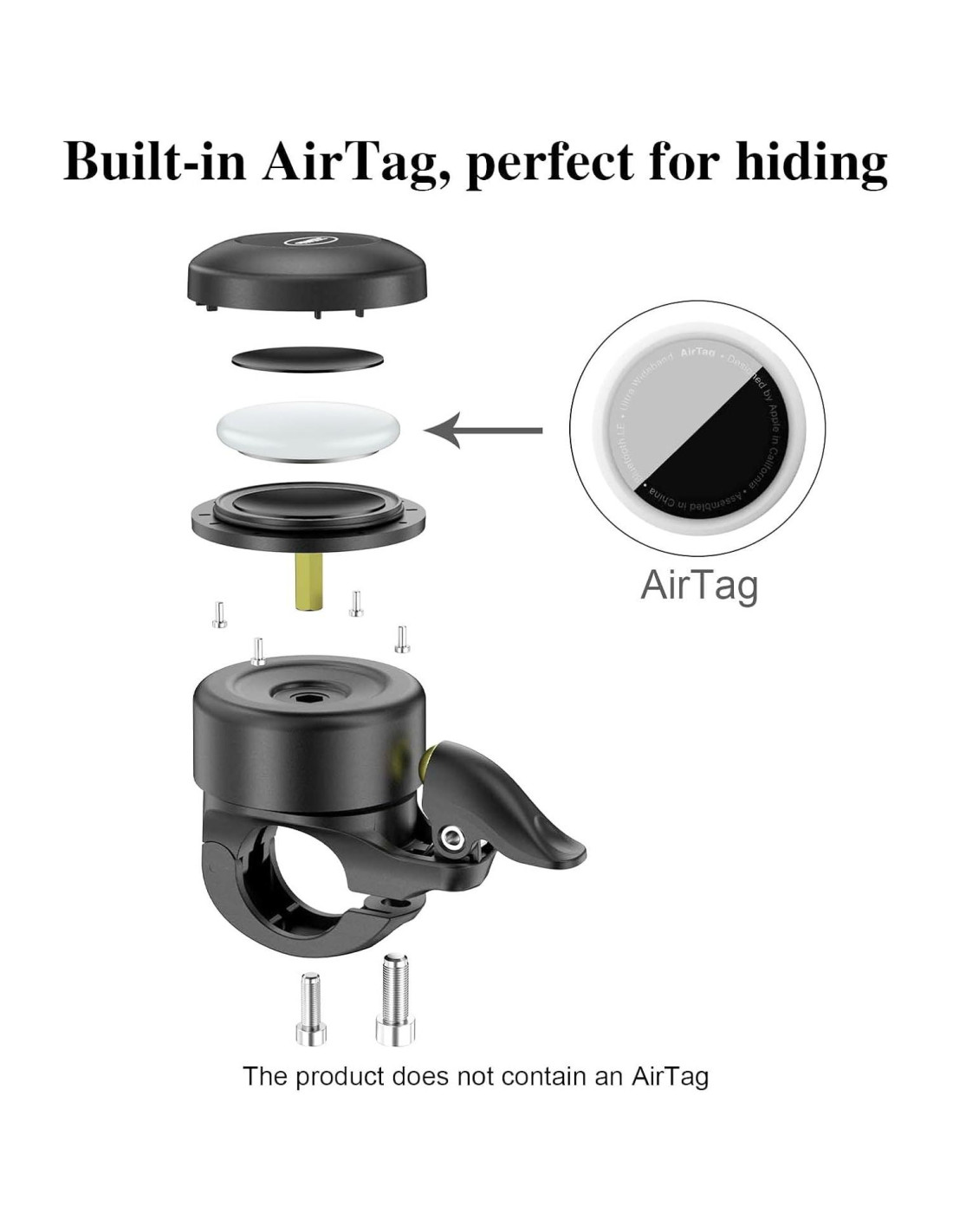 - Notas de instalación Adecuado para manillares de bicicleta de 0.87 pulgadas (22 mm), el AirTag debe estar completamente cargado al ensamblar la campana, ya que quitar el AirTag requiere que la campana se desmonte por completo, lo cual es un poco complicado al principio, pero será fácil una vez que se acostumbre (Por razones de seguridad, el diseño oculto del AirTag es muy ajustado, lo que hace imposible encontrarlo y quitarlo).